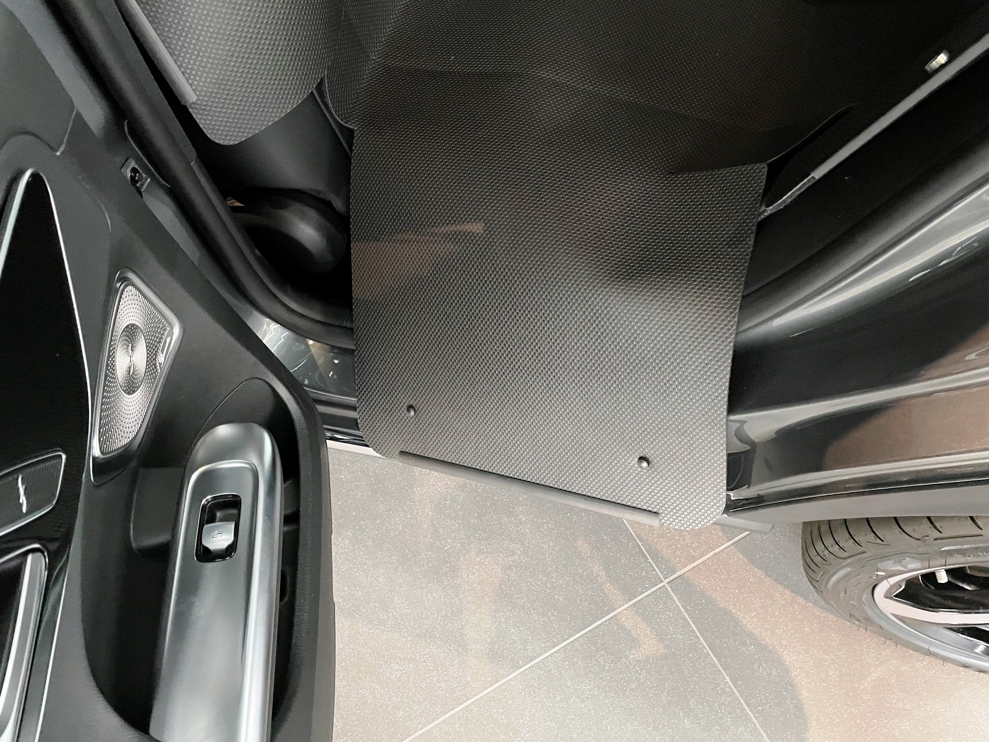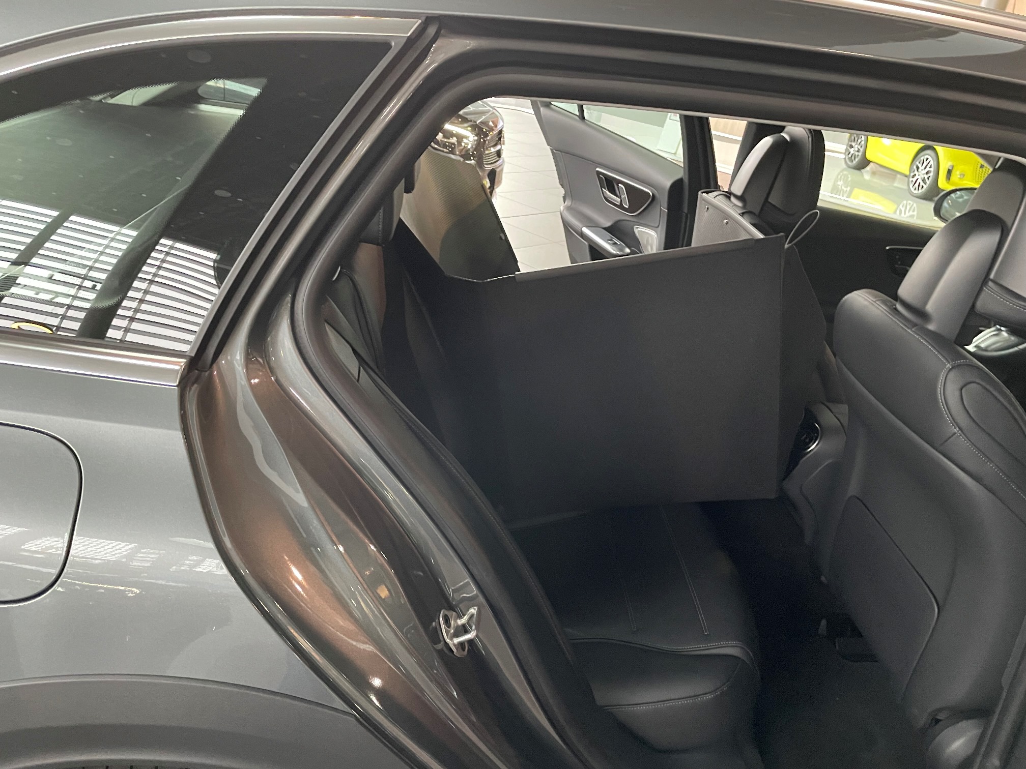 Diese zuvrlässige Hundebox schützt den Fond Ihres Mercedes GLB mit den Varianten 1/3 der Sitzbreite oder 2/3 oder 1/1. Bei der Variante 1/3 bleiben zwei Sitze für Mitfahrer bzw. bei 2/3 ein Sitz. Der Ein- und Ausstieg erfolgt von der linken oder rechten Seite. Sie können bedenkenlos Ihren Hund, der nass und schmutzig sein und triefen darf, auf der Rücksitzbank von GLB transportieren. Unsere Hundebox für die Rücksitzbank ist unverwüstlich, formstabil und selbsttragend daher muss sie nicht mit dem Fahrzeug mittels Schnüren oder Bändern verbunden werden wie bei formlosen Autoschondecken, damit sie feststehen kann. Sie können ihn allgemein für den Transport und speziell als eine ideale Hundebox bzw. Hundetransportbox im Fond verwenden. Sollten Sie die Hundebox für die Rücksitze nicht brauchen, klappen Sie sie sekundenschnell zu einer Matte zusammen und holen Sie sie aus dem Fahrzeug.