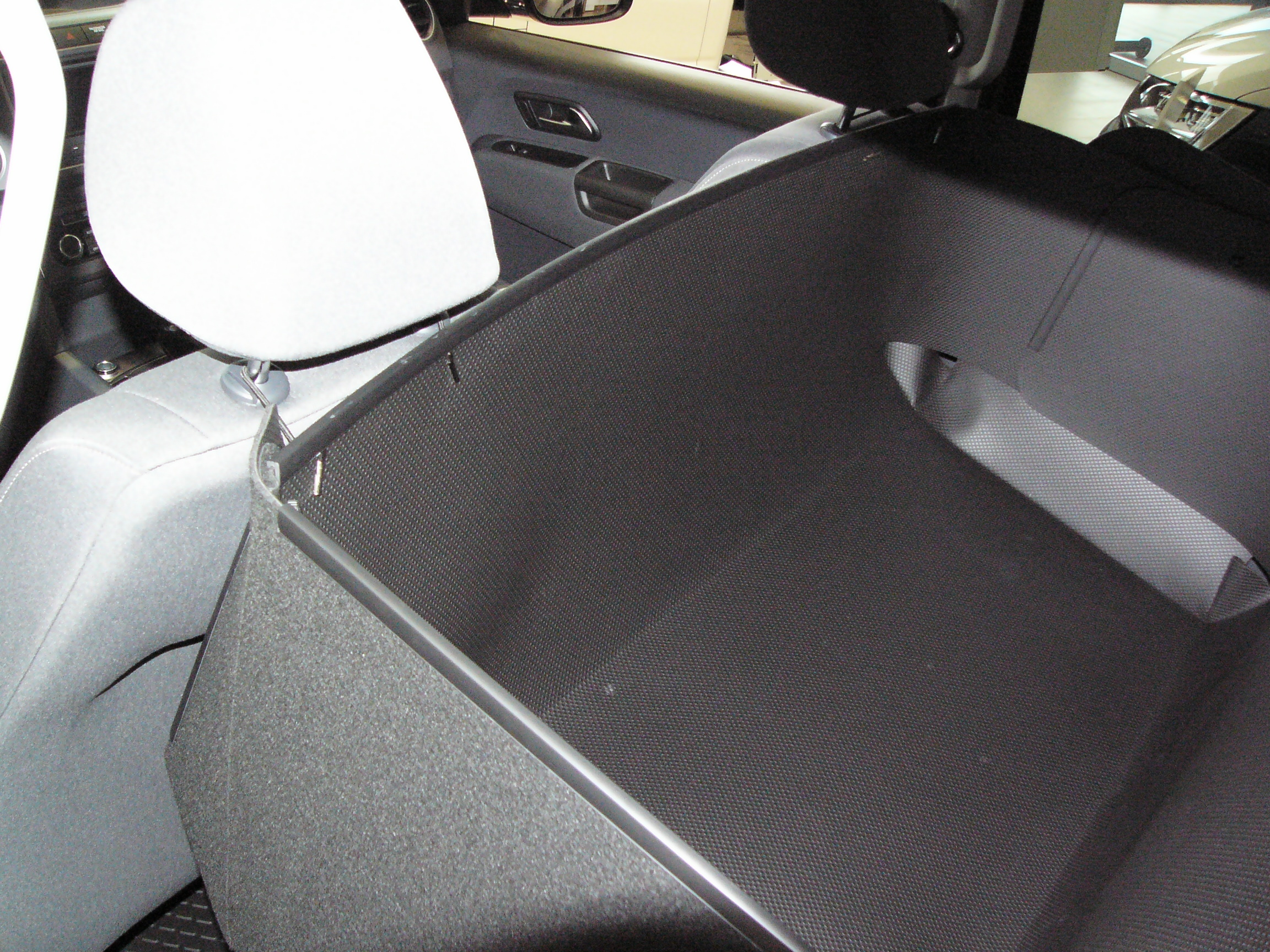 Diese unvergleichliche Hundebox schützt den Fond Ihres VW Amarok rundum und komplett. Der Einstieg ist linksseitig. Sie können bedenkenlos Ihren Hund, der nass und schmutzig sein und triefen darf, auf der Rücksitzbank transportieren. Unsere Hundebox für die Rücksitzbank ist passgenau, formstabil, selbsttragend und unverwüstlich, die mit dem Fahrzeug mittels Schnüren oder Bändern nicht verbunden muss wie bei formlosen Autoschondecken. Sie können ihn allgemein für den Transport und speziell als eine ideale Hundebox bzw. Hundetransportbox verwenden. Sollten Sie die Hundebox für die Rücksitze nicht brauchen, klappen Sie sie sekundenschnell zu einer Matte zusammen und holen Sie sie aus dem Fahrzeug.