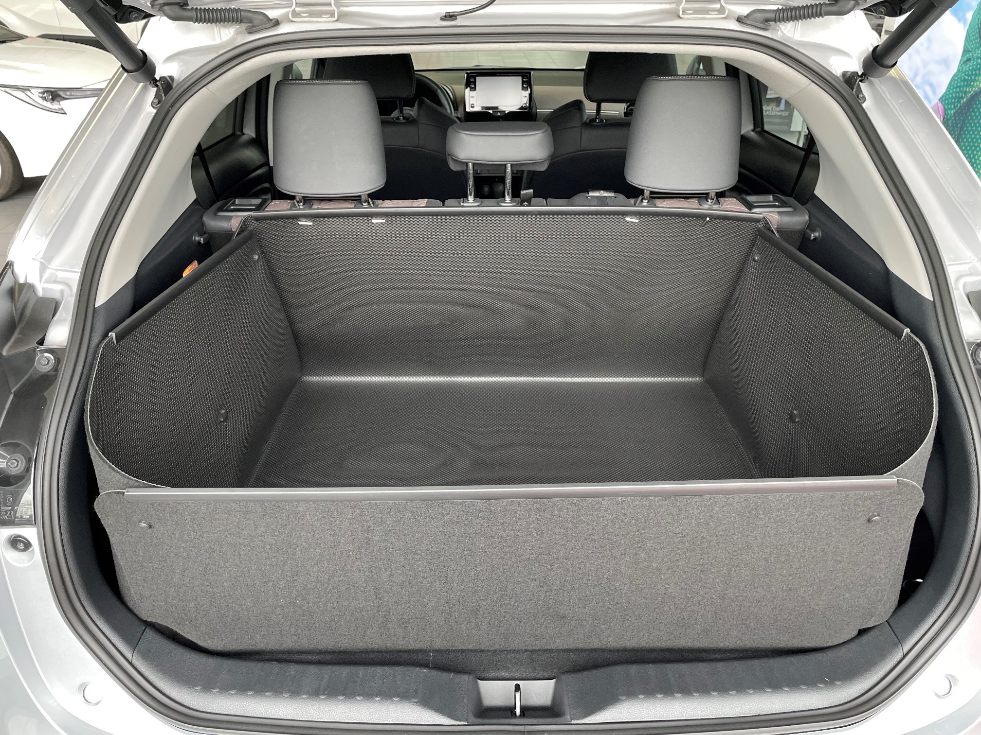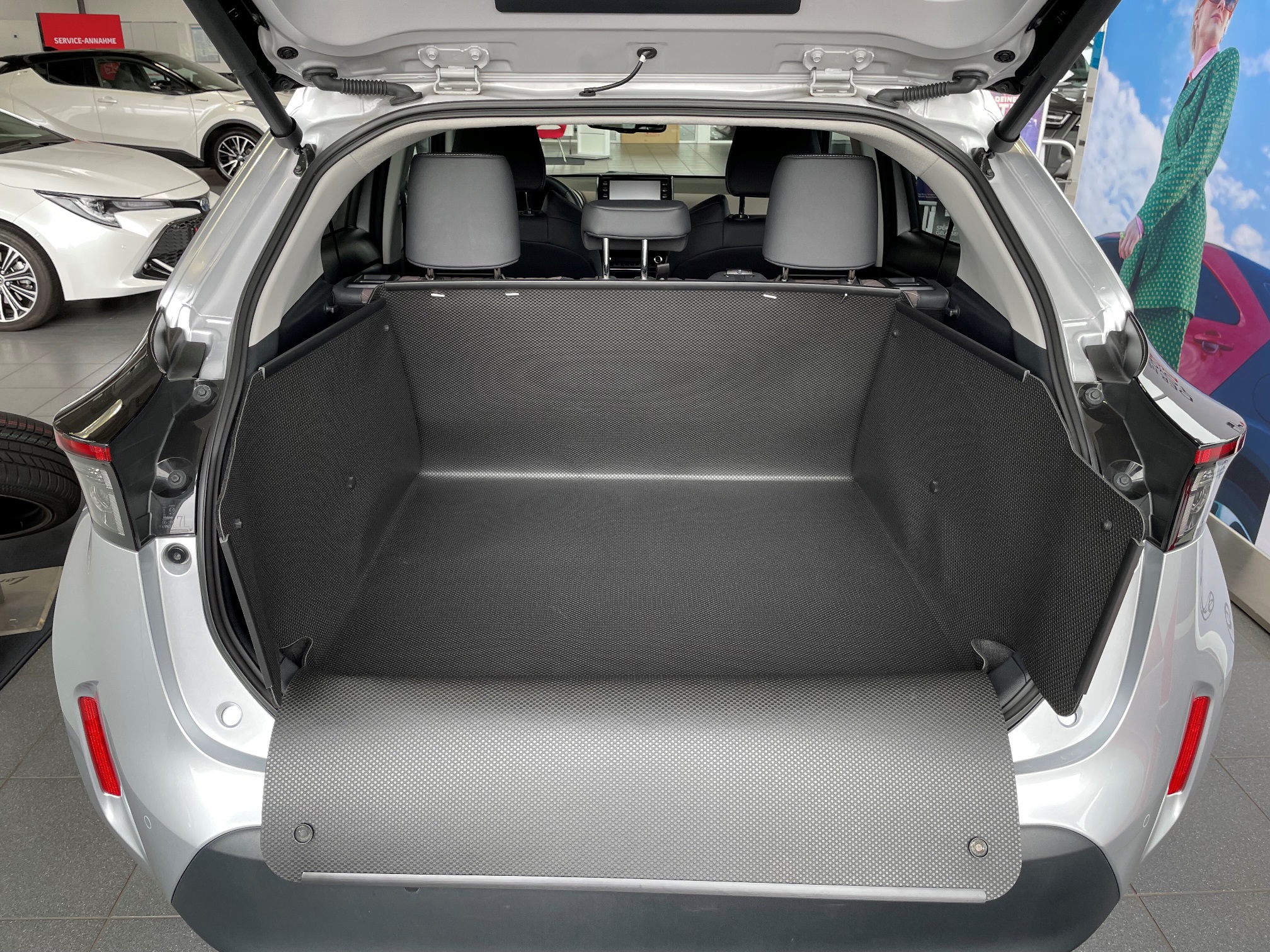 Unsere Kofferraumwannen schützen rundum den Kofferraum Ihres Toyota Yaris Cross und Hybrid einschl. der Ladekante und der Stoßstange. Sie können bedenkenlos Ihren Hund aber auch schmutzerzeugende Gegenstände transportieren. Diese Kofferraumverkleidung ist eine passgenaue, formstabile, selbsttragende und robuste Kofferraumeinlage, daher muss sie nicht wie bei dünnen und formlosen Schutzplanen, Gewebeplanen, Autoschondecken mittels Schnüre oder Klettbänder mit dem Fahrzeug umständlich verbunden werden; sie presst sich gegen die Wände des Kofferraums und gegen die Rückenlehnen und verschwendet somit keinen wertvollen Raum. Der inhaenger ist ein Kofferraumschutz, den Sie als eine ideale Hundebox bzw. Hundetransportbox verwenden können, immer frei von Hundehaaren, Schmutz und Nässe.