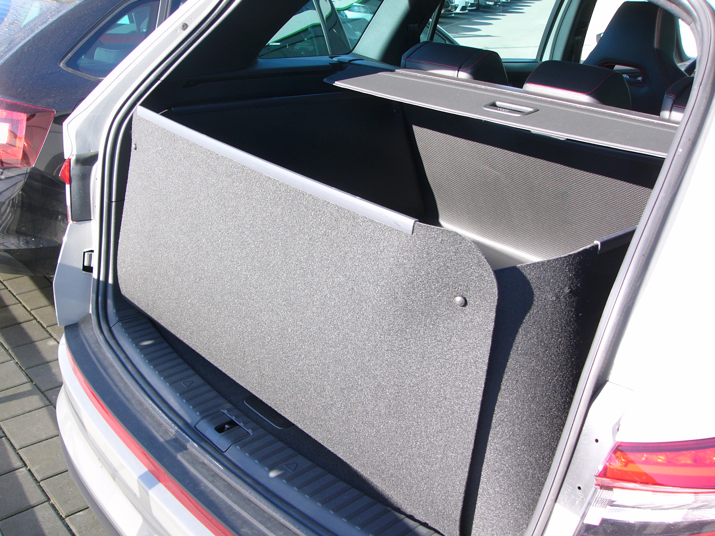 Dieser Kofferraumschutz verkleidet den Kofferraum Ihres Skoda KodiaqSelection rundum. Sie können bedenkenlos Ihren nassen Hund, der auch schmutzig sein darf, transportieren aber auch schmutzerzeugende, schwere, kantige Gegenstände. Unsere Kofferraumauskleidung ist eine Kofferraumwanne, die passgenau, selbsttragend und unverwüstlich ist und mit dem Fahrzeug nicht verbunden werden muss mittels Schnüren oder Klettbändern, wie bei formlosen PVC-Folien, Gewebeplanen und Autoschondecken. Im Gegenteil, der inhaenger ist ein formstabiler Kofferraumschutz, der ohne äußere Unterstützung, selbstständig aufrecht steht und Ihren Kofferraum optimal nutzt. Der inhaenger ist ein Kofferraumschutz, den Sie als eine ideale Hundebox verwenden können, in der sich Ihr Hund frei und sicher fühlt, im Gegensatz zu einem fahrenden Hundezwinger. Der Kofferraum bleibt immer frei von Hundehaaren, Schmutz und Nässe und mechanischer Beschädigung, die eventuell umherfliegende Gegenstände im Kofferraum oder auf- und abspringender Hund verursachen können.