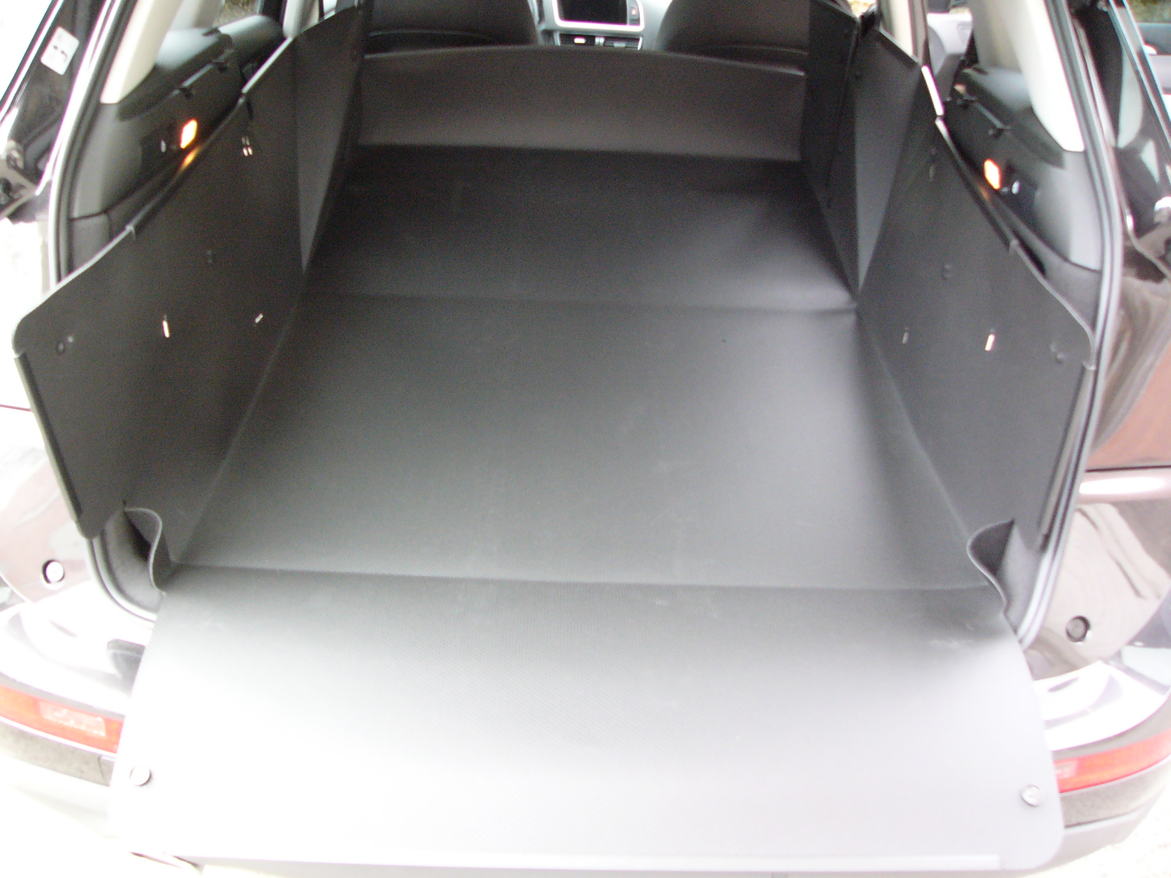 Der Kofferraumschutz, Modell inhaenger L11, schützt den Kofferraum von Q5 rundum und fensterhoch, wenn die Rücksitze in aufgestellter Position sind oder den gesamten verfügbaren Laderaum, wenn die Rücksitze heruntergeklappt sind. Das Modell L11 können Sie z.B. als Hundebox nutzen und Ihre Fahrgäste mitnehmen oder Sie können ganz schnell die Rücksitze umklappen, den inhaenger ausfalten und Ihr Fahrrad transportieren oder Gartenabfälle abfahren, ohne dass der Laderaum schmutzig oder Ihr Fahrzeug beschädigt wird. Das Material des inhaengers ist so robust, dass Sie Ihr Fahrzeug professionell zum Transport von schweren, schmutzigen und sperrigen Gegenständen nutzen können. Unser passgenauer, formstabiler Kofferraumschutz muss nicht wie bei formlosen Schutzplanen, Gewebeplanen, Autoschondecken mittels Schnüre oder Klettbänder mit dem Fahrzeug umständlich verbunden werden; sie presst sich gegen die Wände des Kofferraums und gegen die Rückenlehnen und verschwendet somit keinen wertvollen Raum.