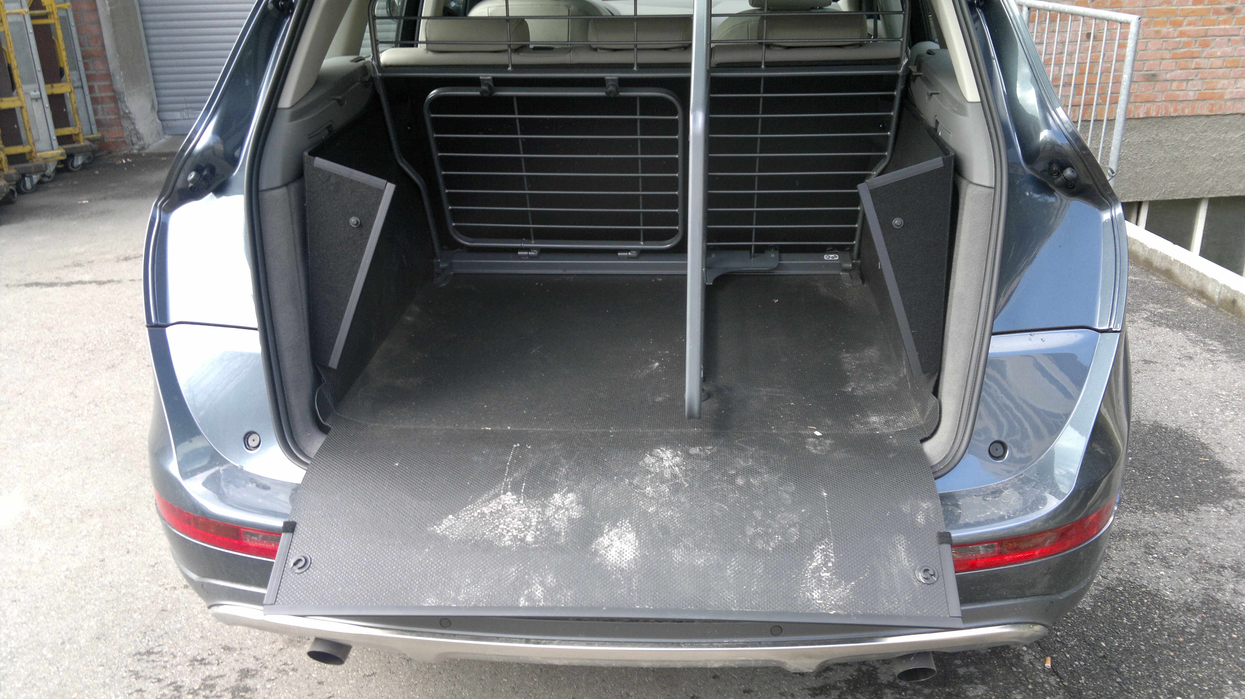 Diese Kofferraumwanne bietet einen Rundumschutz einschl. der Ladekante und der Stoßstange, wobei in den inhaenger ein Trenngitter von Audi verbaut ist. Unsere Kofferraumverkleidung ist eine passgenaue, formstabile, selbsttragende und robuste Kofferraumeinlage. Der Kofferraumschutz inhaenger besteht aus einem Verbundmaterial, das eine Gesamtdicke von 5mm hat , wovon die äußere Seite aus einem 3,5 mm dicken Teppich als Träger und die innere Seite d.h. die Nutzfläche aus einer 1,5 mm dicken Gummierung besteht. Diese Kofferraumwanne ist nicht vergleichbar mit formlosen Schutzplanen, Gewebeplanen, Autoschondecken, die mittels Schnüren oder Klettbändern mit dem Fahrzeug umständlich verbunden werden. Der inhaenger ist ein Kofferraumschutz, den Sie mit einem eingebauten Hundetgitter als eine ideale Hundebox bzw. Hundetransportbox verwenden können, frei von Hundehaaren, Schmutz, Geruch und Nässe.