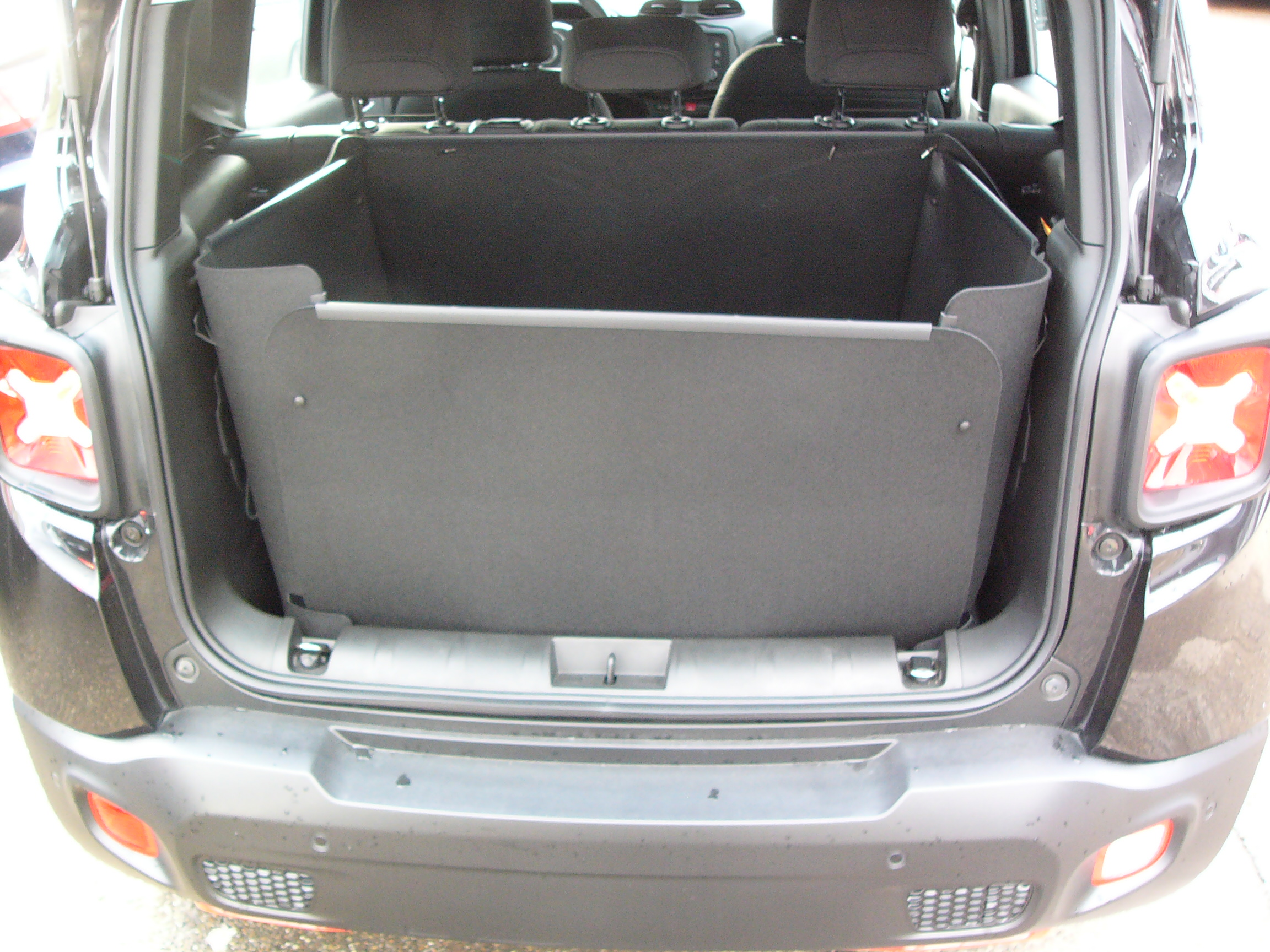Dieser Kofferraumschutz verkleidet die Seitenwände des Kofferraum Ihres Jeep Renegade rundum und hoch. Die Rückwand, die die Rückenlehnen schützt, lässt sich mit ihnen zusammen herunterklappen. Sie können bedenkenlos Ihren Hund, der nass und schmutzig sein darf, transportieren aber auch schwere, spitze und schmutzigeGegenstände. Unsere Kofferraumvaus kleidung ist eine passgenaue, selbsttragende und 100% wasserdichte Kofferraumwanne, die mit dem Fahrzeug nicht verbunden werden muss mittels Schnüren oder Klettbändern, wie bei dünnen und formlosen Planen, Schutzfolien, Autoschondecken oder Kunstledern. Im Gegenteil, der inhaenger ist ein Kofferraumschutz, der ohne äußere Unterstützung, selbstständig aufrecht steht und Ihren Kofferraum optimal nutzt, ohne vom wertvollen Raum etwas zu verlieren. Sie können ihn allgemein für den Transport und speziell als eine ideale, nach oben freie Hundebox bzw. Hundetransportbox verwenden statt in einem käfigartigen Zwinger, stets ohne Feuchtigkeit, Geruch, Schmutz und mechanischer Beschädigung beim Be- und Entladen bzw. Auf- und Abspringen des Hundes. Sollten Sie den Kofferraumschutz nicht brauchen, klappen Sie ihn sekundenschnell zu einer strapazierfähigen Bodenmatte zusammen und Sie haben einen aufgeräumten und sauberen Kofferraum.