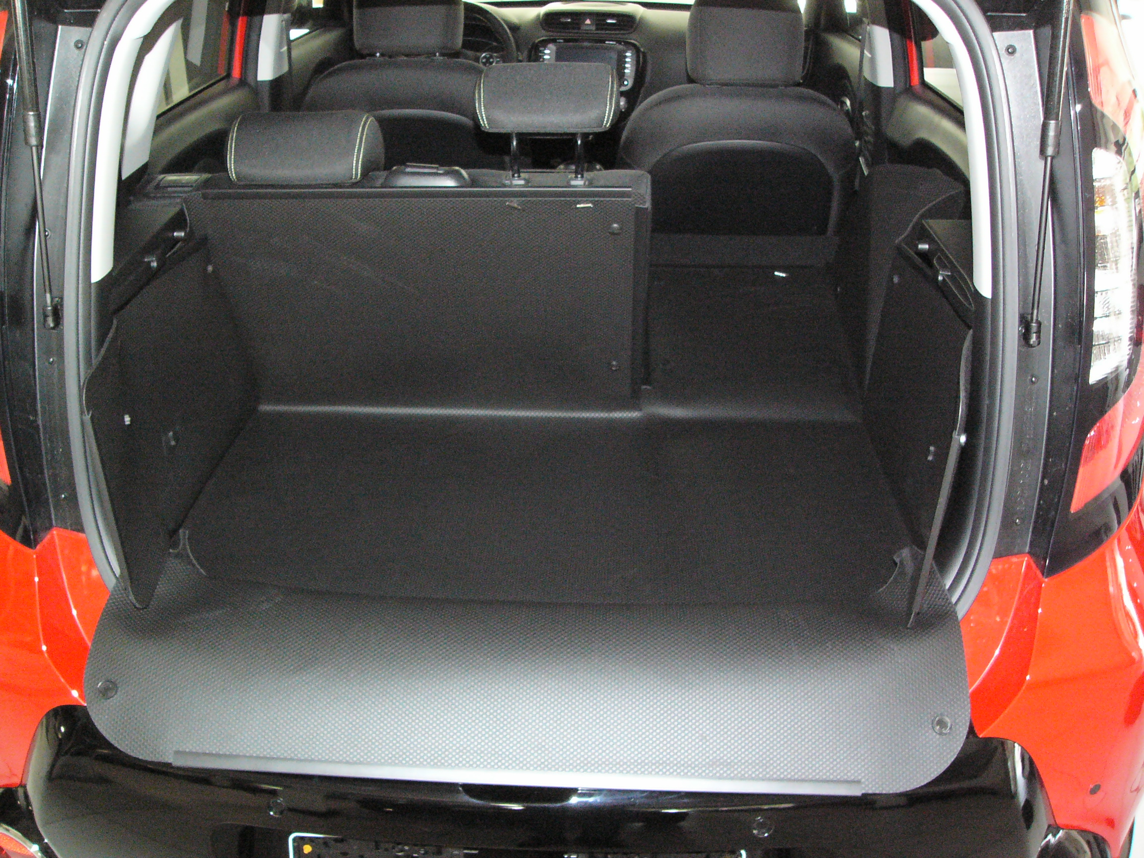 Unsere Kofferraumwanne schützt den gesamten Kofferraum Ihres Kia Soul komplett hoch bis zu den Fenstern einschl. der Ladekante und Stoßstange. Sie können bedenkenlos Ihren Hund aber auch schmutzerzeugende, schwere, spitze Gegenstände transportieren. Wie Sie die Rückenlehnen herunterklappen, können Sie die Rückwand des in haengers entsprechend mit herunterklappen; d.h. 1 Rückenlehne, 2 Rückenlehnen oder alle 3 Rückenlehnen. Unsere Kofferraumverkleidung ist eine passgenaue, formstabile, selbsttragende und unverwüstliche Kofferraumeinlage, daher muss sie nicht wie bei formlosen Schutzplanen, Gewebeplanen, Autoschondecken mittels Schnüren oder Klettbändern mit dem Fahrzeug verbunden werden; sie liegt mit ihrer Wandstärke von 5mm wie eine zweite Haut an den Wänden des Kofferraums und verschwendet daher keinen wertvollen Raum. Der inhaenger ist ein Kofferraumschutz, den Sie als eine ideale Hundebox bzw. Hundetransportbox verwenden können, immer frei von Hundehaaren, Schmutz und Nässe.