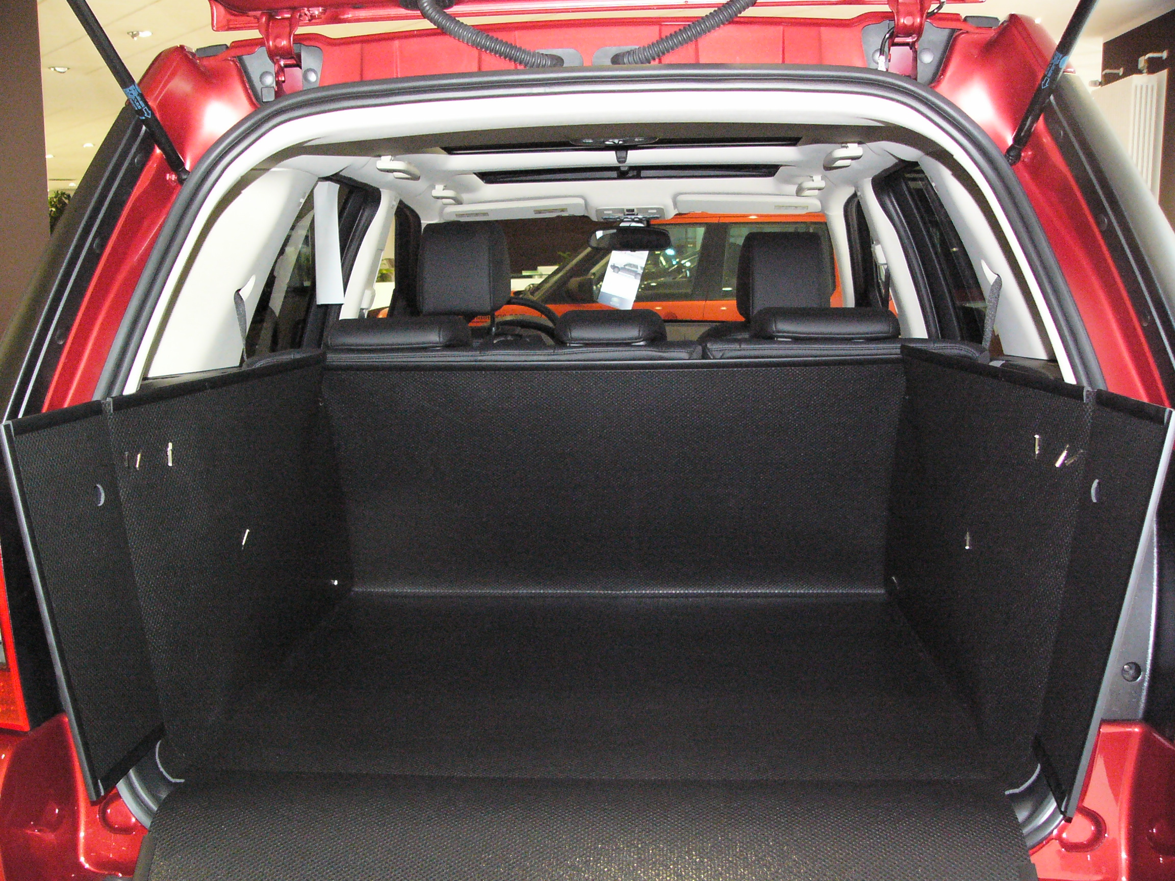 Hohe und passgenaue Kofferraumwanne für Land Rover Frelander II. Hundebox Land Rover Frelander II