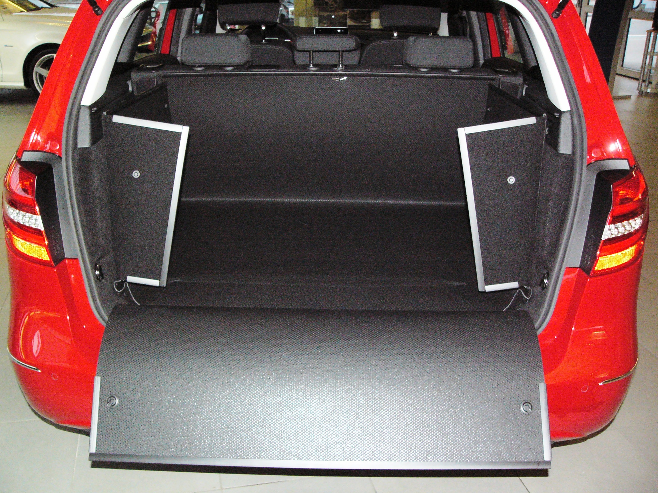 Diese Kofferraumwanne schützt den Kofferraum Ihrer Mercedes B-Klasse rundum und komplett. Sie können bedenkenlos Ihren Hund transportieren aber auch schmutzerzeugende, schwere, spitze Gegenstände. Unsere Kofferraumverkleidung ist eine passgenaue, formstabile, selbsttragende und unverwüstliche Kofferraumeinlage, die mit dem Fahrzeug nicht verbunden werden muss mittels Schnüren oder Klettbändern, wie bei formlosen Schutzplanen, Gewebeplanen, Autoschondecken. Im Gegenteil, der inhaenger ist ein Kofferraumschutz, der ohne äußere Unterstützung, selbstständig aufrecht steht und Ihren Kofferraum optimal nutzt, ohne vom wertvollen Raum etwas zu verlieren. Sie können ihn allgemein für den Transport und speziell als eine ideale Hundebox bzw. Hundetransportbox verwenden.