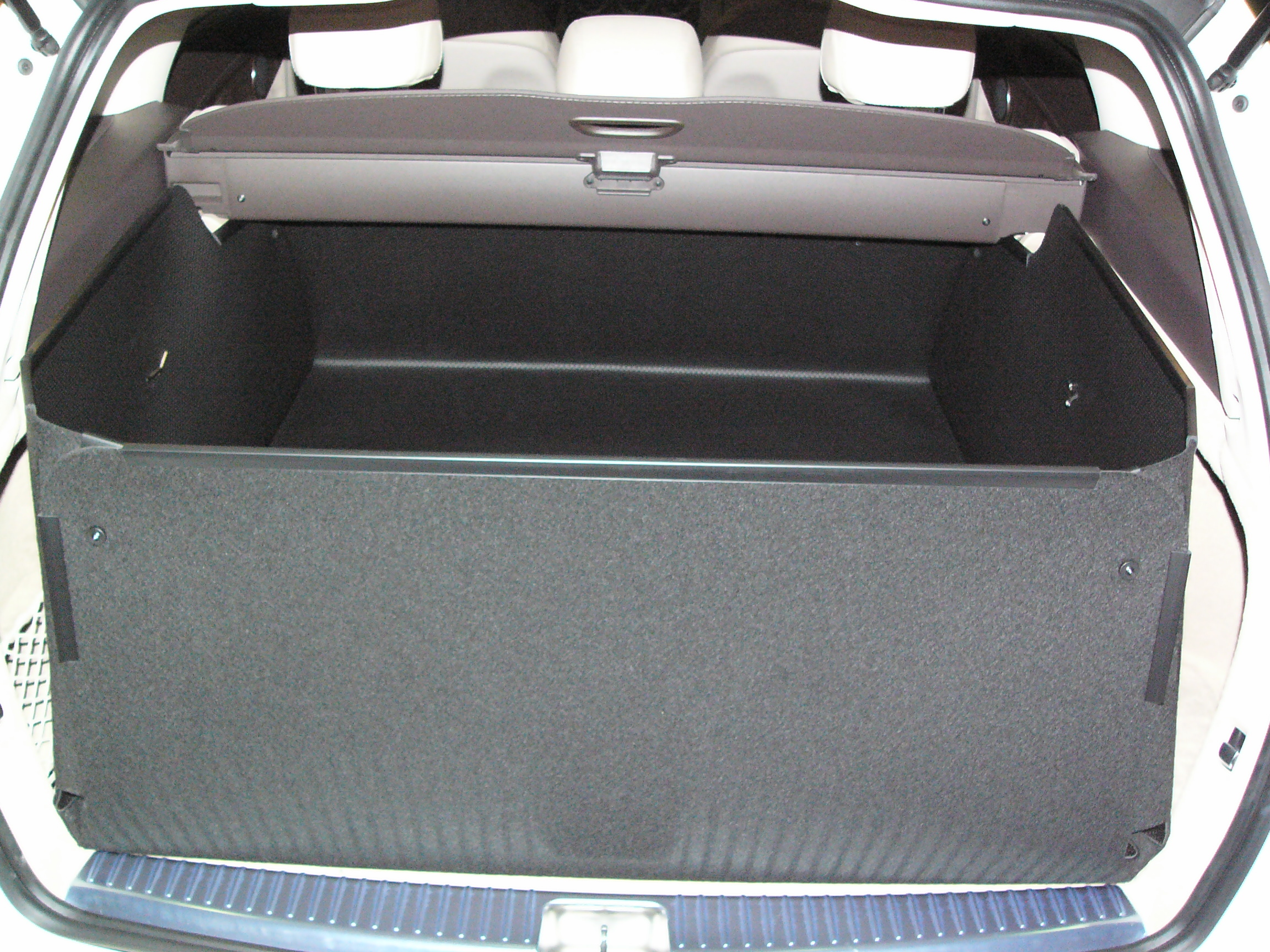 Diese Kofferraumverkleidung ist selbsttragend und formstabil. Unsere unverwüstliche Kofferraumwanne muss nicht wie bei formlosen Schutzplanen, Gewebeplanen, Autoschondecken mit dem Fahrzeug verbunden werden mittels Schnüren oder Klettbändern .