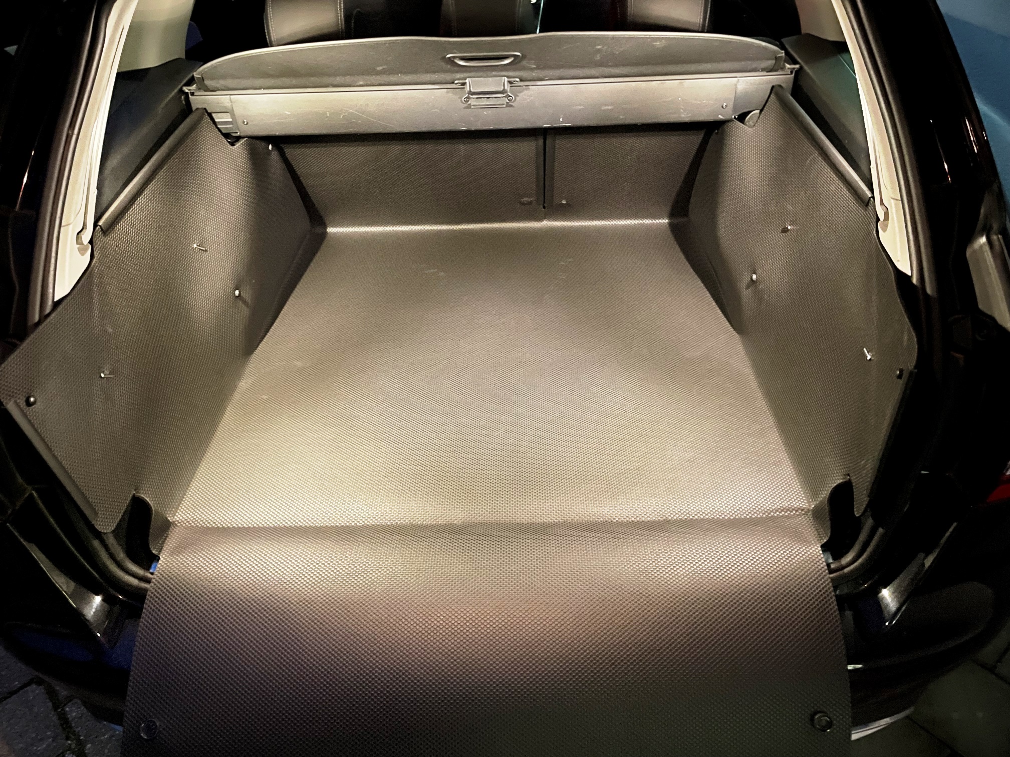 Der gesamte Kofferraum Ihres Nuen Mercedes C-Klasse T-Modells wird komplett geschützt einschl. der Ladekante und Stoßstange. Nehmen Sie problemlos Ihren beschmutzten und nassen Hund mit aber auch schmutzerzeugende, schwere, spitze Gegenstände. Beim Transport von längeren Gegenständen, so, wie Sie die Rückenlehnen der C-Klasse herunterklappen, können Sie auch die Rückwand des inhaengers d.h. eine Rückenlehne, zwei Rückenlehnen oder alle drei Rückenlehnen mit herunterklappen. Unsere Kofferraumverkleidung ist eine passgenaue, formstabile, selbsttragende und unverwüstliche Kofferraumeinlage, daher muss sie nicht wie bei formlosen Schutzplanen, Gewebeplanen, Autoschondecken mittels Schnüren oder Klettbändern mit dem Fahrzeug verbunden werden; sie liegt mit ihrer Wandstärke von 5mm wie eine zweite Haut an den Wänden des Kofferraums und verschwendet daher keinen wertvollen Raum. Der inhaenger ist ein Kofferraumschutz, den Sie als eine ideale Hundebox bzw. Hundetransportbox verwenden können, immer frei von Hundehaaren, Schmutz und Nässe.