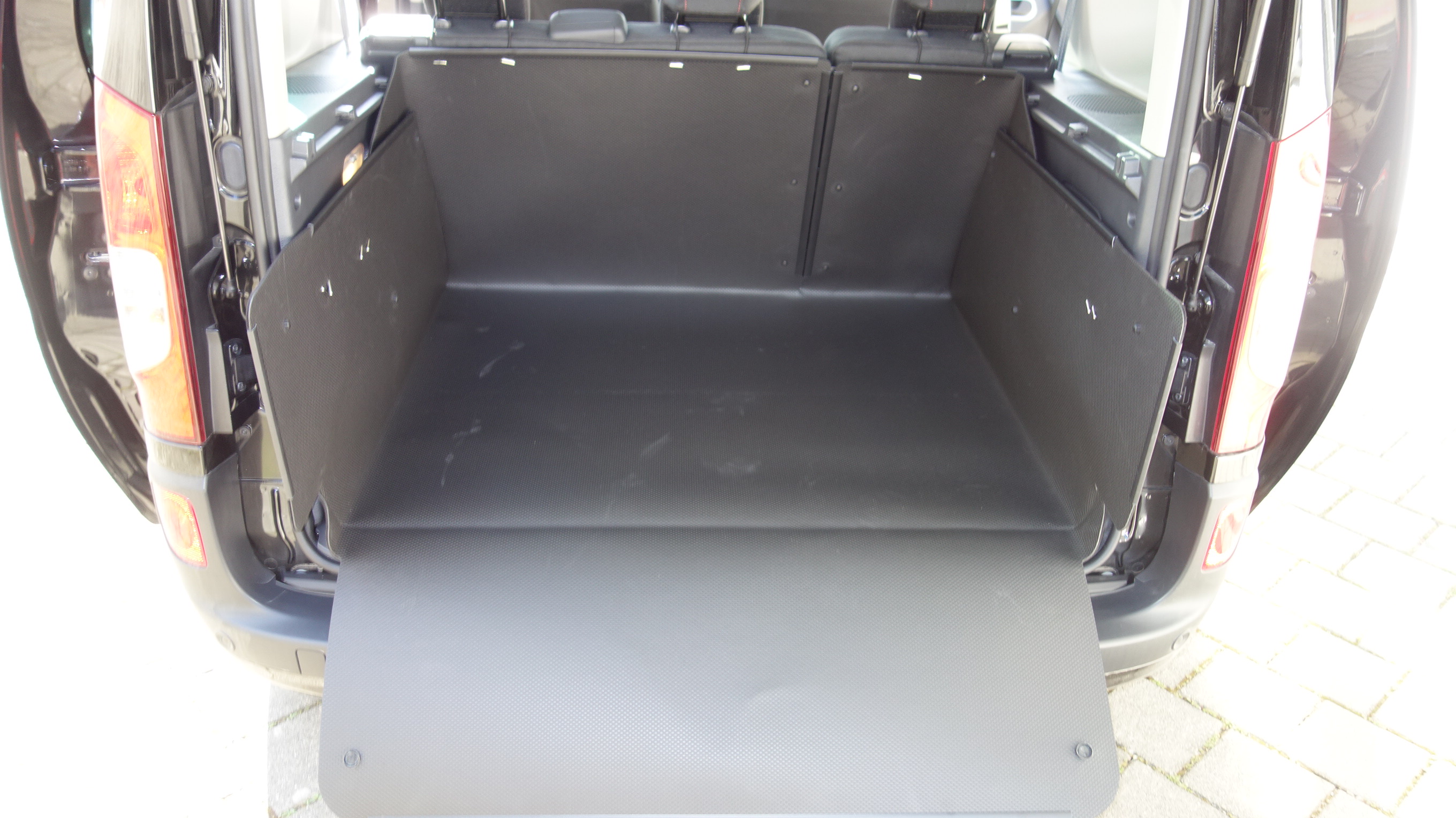 Diese Kofferraumwanne verkleidet den Kofferraum Ihres Mercedes Citan rundum und komplett. Die Rückwand lässt sich 1/3, 2/3 bzw. als ganze herunterklappen. Sie können schmutzerzeugende, schwere, spitze Gegenstände, die Sie alltäglich professionell transportieren müssen, bedenkenlos in den Laderaum schieben. Unsere Kofferraumverkleidung ist eine passgenaue, formstabile, selbsttragende und unverwüstliche Kofferraumeinlage, die mit dem Fahrzeug nicht verbunden werden muss mittels Schnüren oder Klettbändern, wie es bei formlosen Schutzplanen, Gewebeplanen, Autoschondecken der Fall ist. Im Gegenteil, der inhaenger ist ein Kofferraumschutz, der ohne äußere Unterstützung, selbstständig aufrecht steht und Ihren Kofferraum optimal nutzt, ohne vom wertvollen Raum etwas zu verlieren. Sie können ihn allgemein für den Transport und speziell als eine ideale Hundebox bzw. Hundetransportbox verwenden.