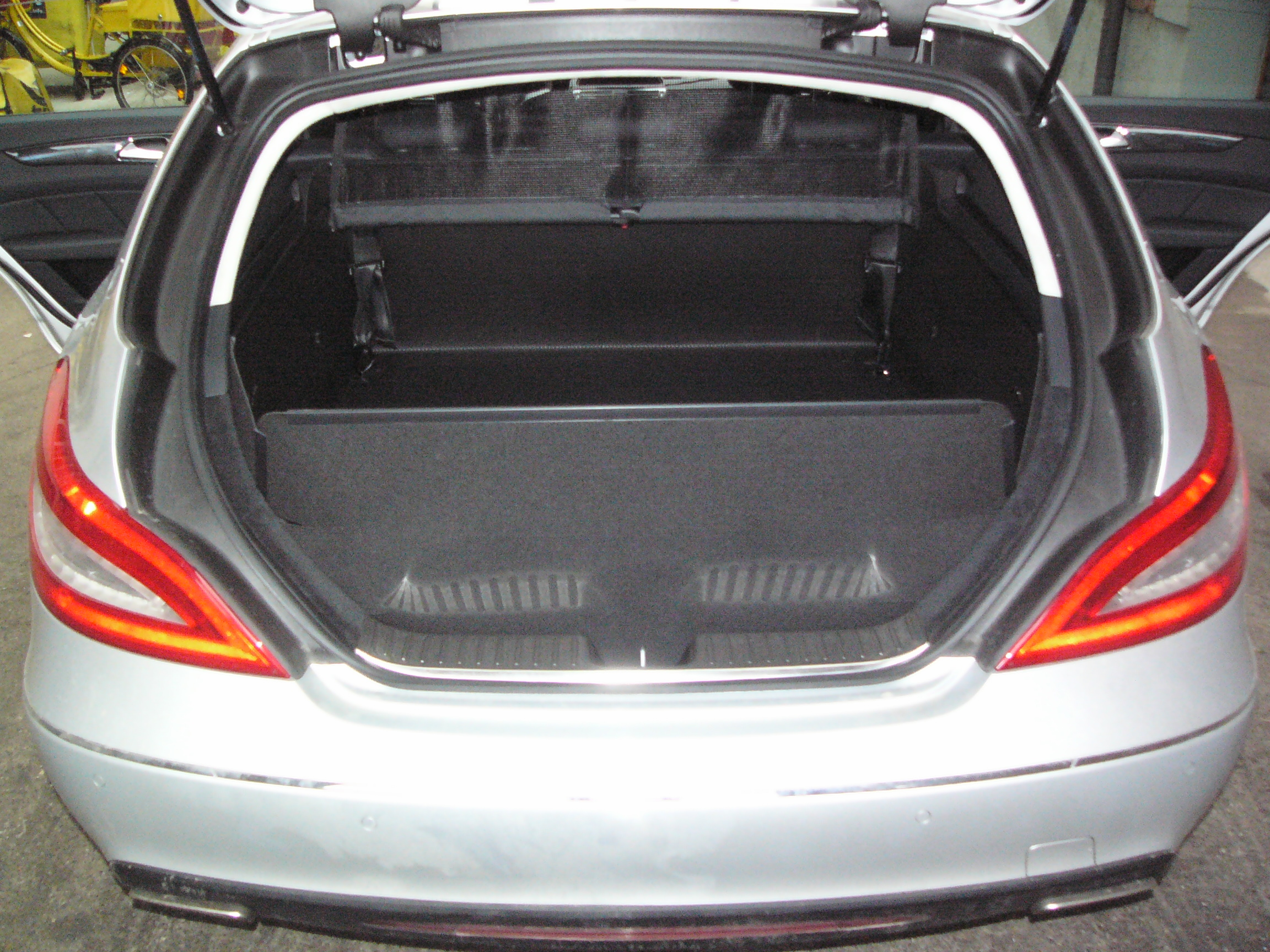 Dieser Kofferraumschutz verkleidet den Kofferraum Ihrer Mercedes CLS shooting brake rundum und komplett. Sie können das Abdeckrollo und die Netztrennwand benutzen und können bedenkenlos Ihren Hund, der nass und schmutzig sein und triefen darf, transportieren aber auch schmutzerzeugende, schwere, spitze Gegenstände. Unsere Kofferraumverkleidung ist eine passgenaue, formstabile, selbsttragende und unverwüstliche Kofferraumeinlage, die mit dem Fahrzeug nicht verbunden werden muss mittels Schnüren oder Klettbändern, wie bei formlosen Schutzplanen, Gewebeplanen, Autoschondecken. Im Gegenteil, der inhaenger ist ein Kofferraumschutz, der ohne äußere Unterstützung, selbstständig aufrecht steht und Ihren Kofferraum optimal nutzt, ohne vom wertvollen Raum etwas zu verlieren. Sie können ihn allgemein für den Transport und speziell als eine ideale Hundebox bzw. Hundetransportbox verwenden; die Netztrennwand schützt im Falle eines Crashs sowohl den Hund als auch die Mitfahrenden.
