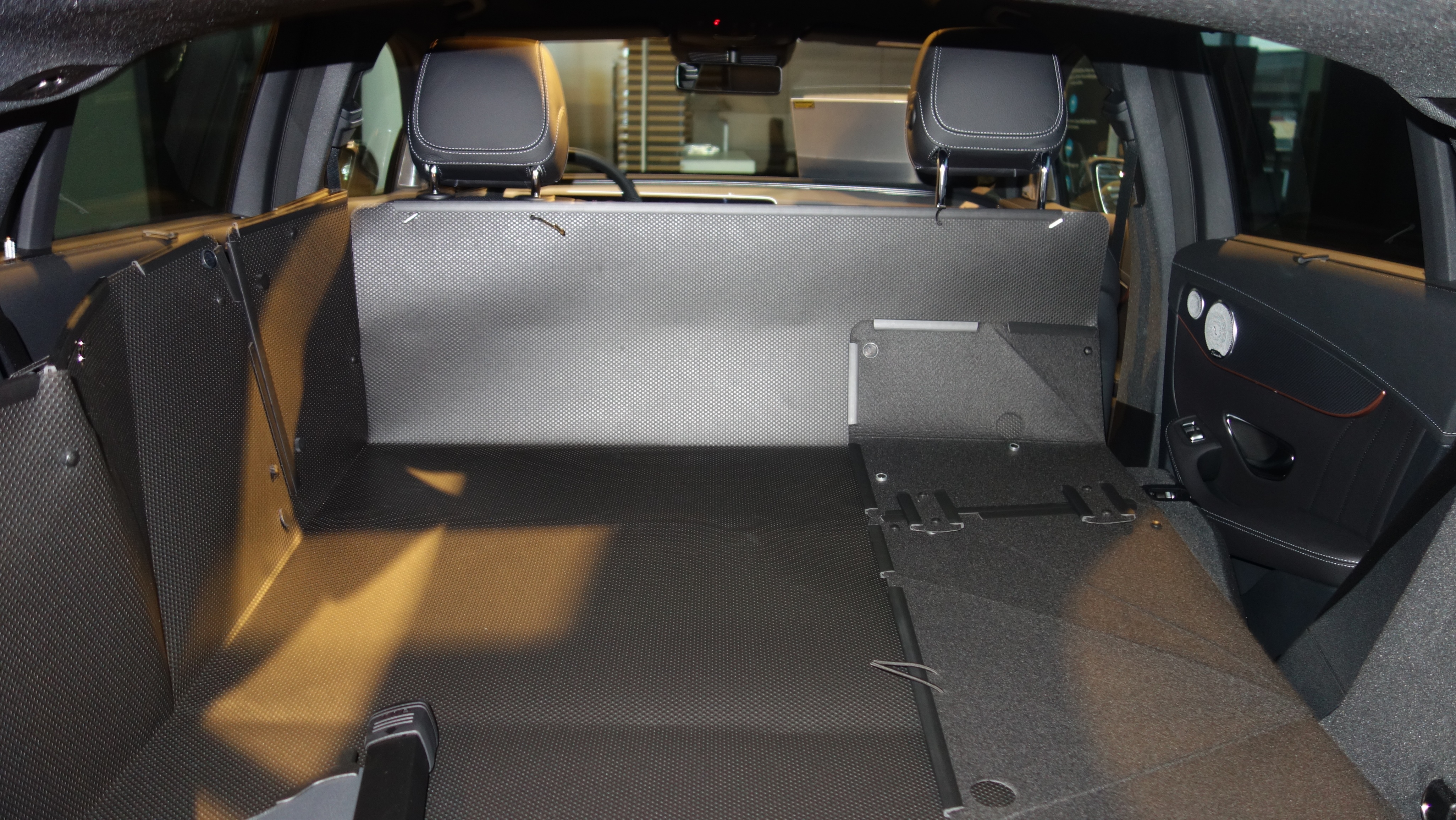 Dieser Kofferraumwanne verkleidet den Kofferraum Ihres Mercedes EQC bei aufrechten oder den gesamten verfügbaren Laderaum bei umgeklappten Rücksitzen. In der ersten Gebrauchsstellung können Sie z.B. Ihren Hund sicher transportieren und im Fond Fahrgäste mitnehmen. In der zweiten Gebrauchsstellung (wenn die Rücksitze heruntergeklappt sind) können Sie Ihr Fahrrad zur Inspektion bringen. Die Ladekante, Stoßstange und die Heckklappe werden in beiden Gebrauchstellungen zuverlässig geschützt.