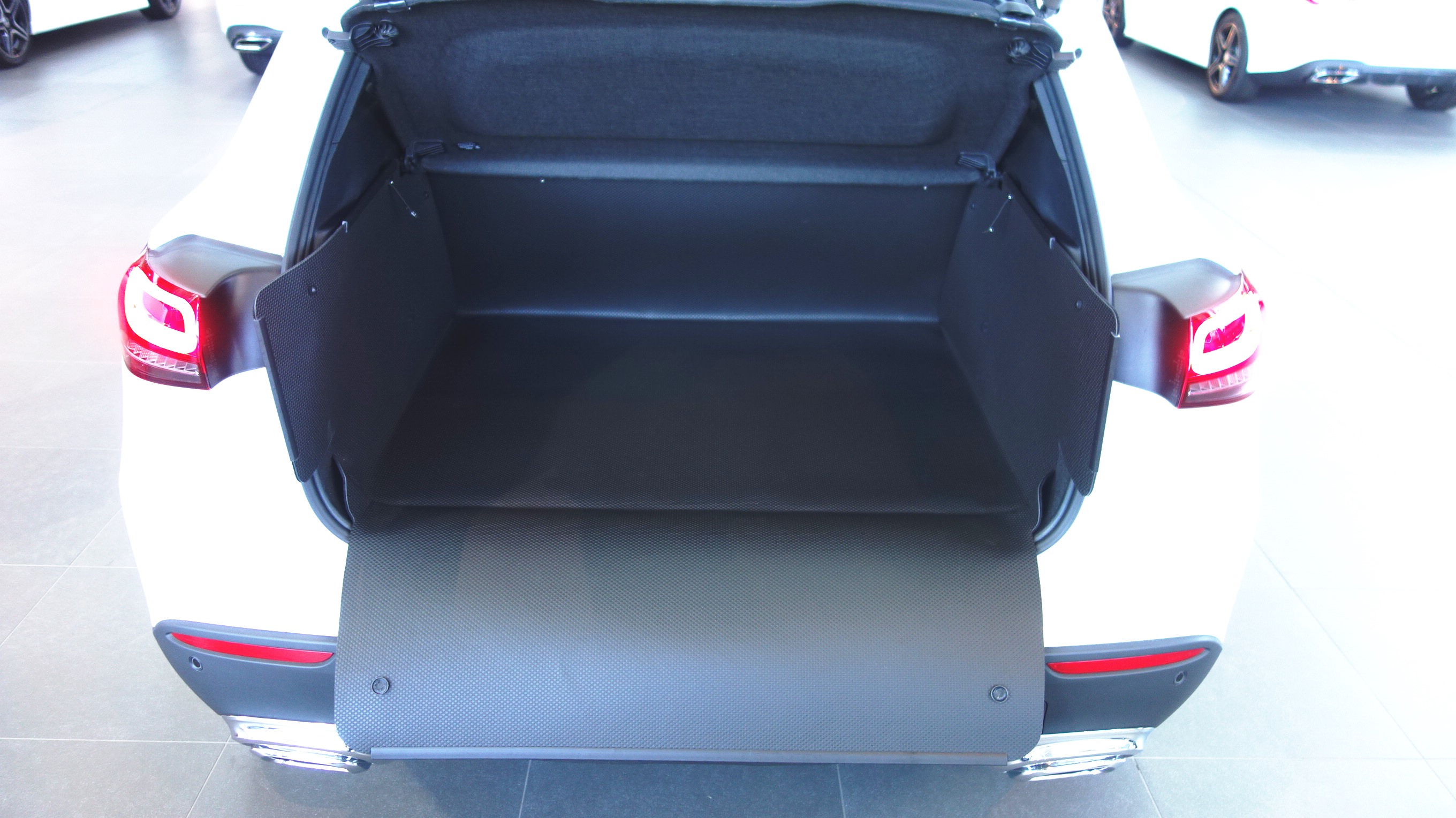 Dieser Kofferraumschutz verkleidet den Kofferraum des neuen Mercedes GLA komplett. Sie können bedenkenlos Ihren Hund, der nass und schmutzig sein und triefen darf, transportieren aber auch schmutzerzeugende, schwere, spitze Gegenstände. Unsere Kofferraumverkleidung ist eine passgenaue, formstabile, selbsttragende und unverwüstliche Kofferraumeinlage, die mit dem Fahrzeug nicht verbunden werden muss mittels Schnüren oder Klettbändern, wie bei formlosen Schutzplanen, Gewebeplanen, Autoschondecken. Im Gegenteil, der inhaenger ist ein Kofferraumschutz, der ohne äußere Unterstützung, selbstständig aufrecht steht und Ihren Kofferraum optimal nutzt, ohne vom wertvollen Raum etwas zu verlieren. Sie können ihn allgemein für den Transport und speziell als eine ideale Hundebox bzw. Hundetransportbox verwenden.