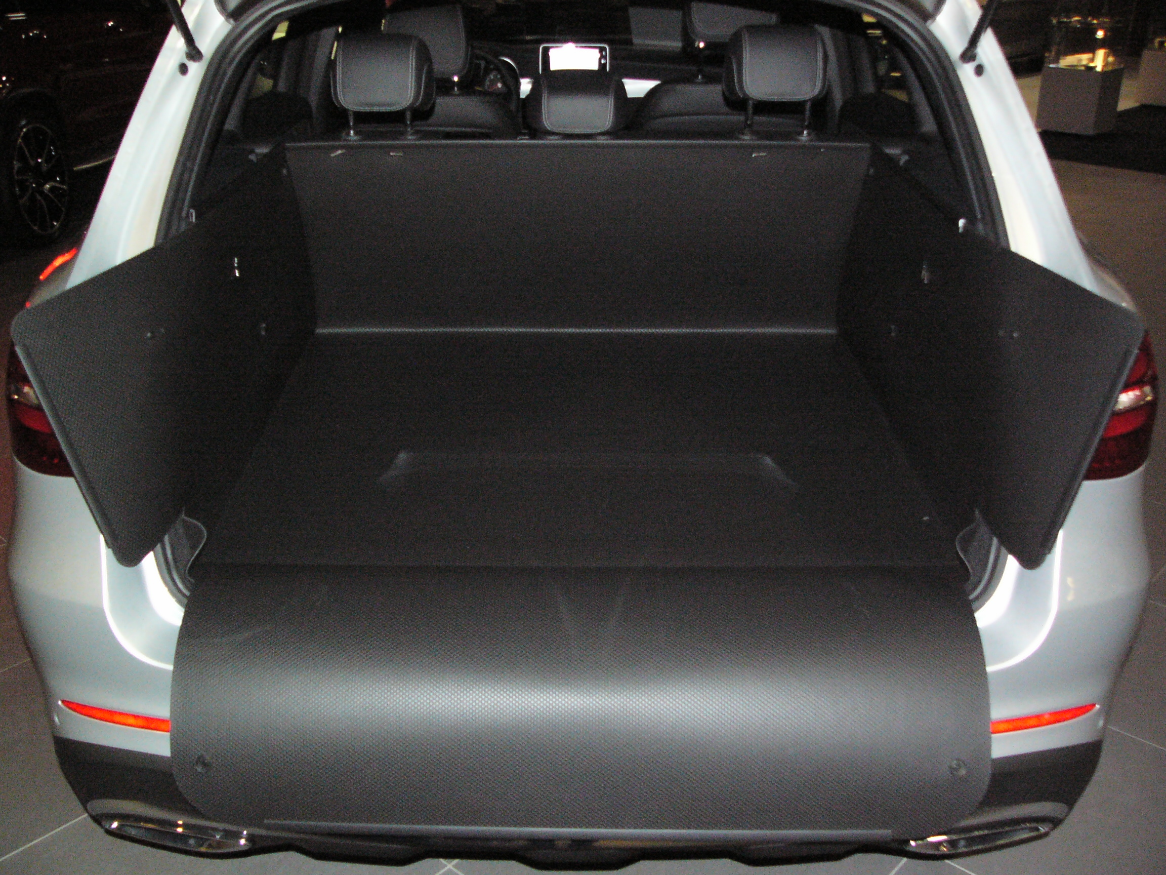Dieser Kofferraumschutz verkleidet den Kofferraum Ihrer Mercedes GLC rundum und komplett. Der Laderaum lässt sich vergrößern durch Umklappen der Rückwand bei heruntergeklappter Rückbank. Sie können bedenkenlos Ihren Hund, der nass und schmutzig sein und triefen darf, transportieren aber auch schmutzerzeugende, schwere, spitze Gegenstände. Unsere Kofferraumverkleidung ist eine passgenaue, formstabile, selbsttragende und unverwüstliche Kofferraumeinlage, die mit dem Fahrzeug nicht verbunden werden muss mittels Schnüren oder Klettbändern, wie bei formlosen Schutzplanen, Gewebeplanen, Autoschondecken. Im Gegenteil, der inhaenger ist ein Kofferraumschutz, der ohne äußere Unterstützung, selbstständig aufrecht steht und Ihren Kofferraum optimal nutzt, ohne vom wertvollen Raum etwas zu verlieren. Sie können ihn allgemein für den Transport und speziell als eine ideale Hundebox bzw. Hundetransportbox verwenden.