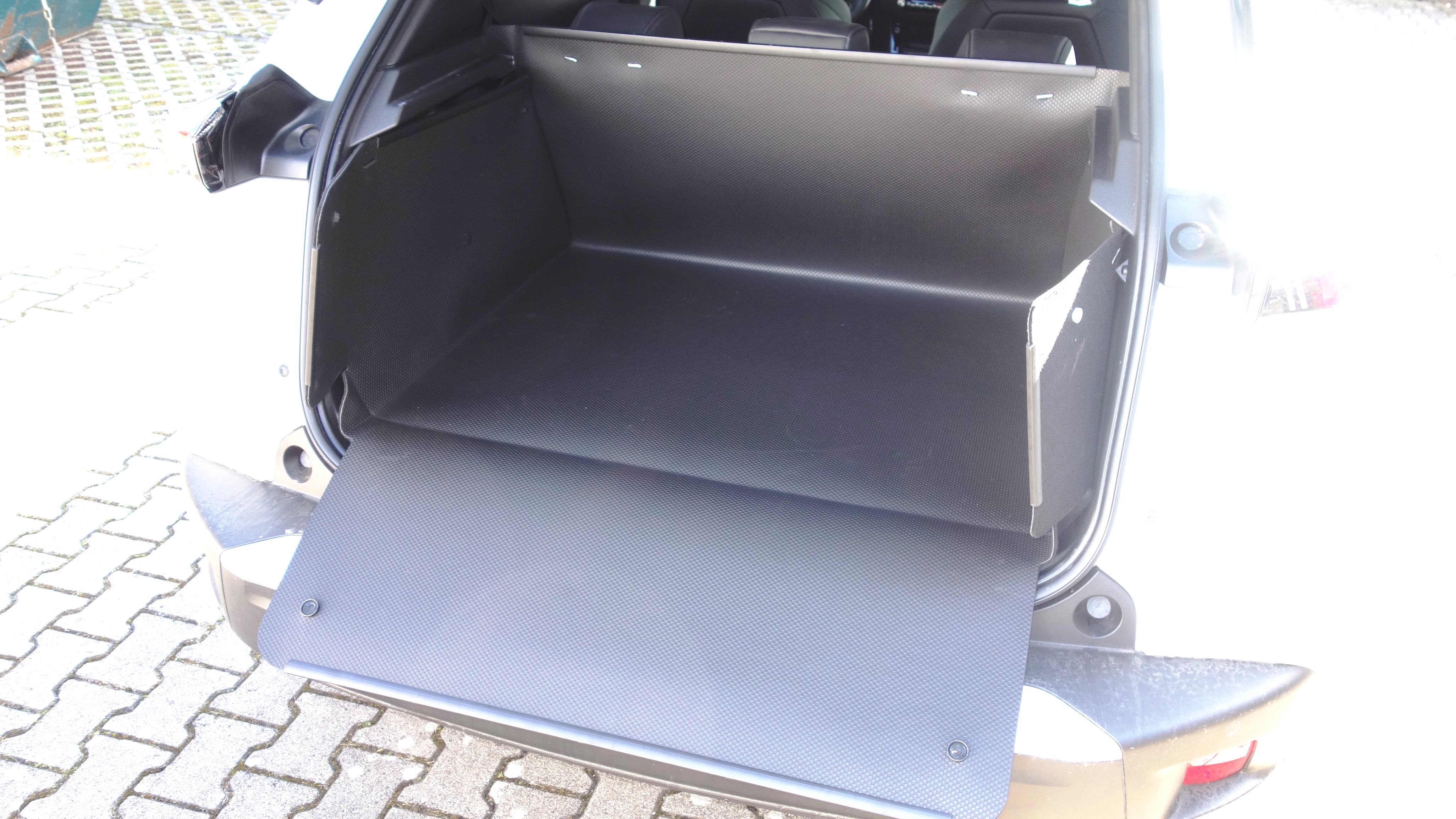 Dieser Kofferraumschutz schützt den Kofferraum Ihres Peugeot e2008 rundum und komplett. Die Rückwand lässt sich mit den Rückenlehnen zusammen umklappen. Sie können bedenkenlos Ihren Hund, der nass und schmutzig sein und von ihm Wasser triefen darf, transportieren aber auch schmutzerzeugende, schwere, spitze Gegenstände. Unsere Kofferraumwanne ist eine passgenaue und formstabile Kofferraumeinlage, die selbsttragende und unverwüstlich ist und mit dem Fahrzeug nicht verbunden werden muss mittels Schnüren oder Klettbändern, wie bei formlosen Schutzplanen, Gewebeplanen, Autoschondecken. Im Gegenteil, der inhaenger ist ein Kofferraumschutz, der ohne äußere Unterstützung, selbstständig aufrecht steht und Ihren Kofferraum optimal nutzt, ohne vom wertvollen Raum etwas zu verlieren. Sie können ihn allgemein für den Transport und speziell als eine ideale Hundebox bzw. Hundetransportbox verwenden und sich auf diesen Kofferraumschutz stets 100% verlassen.