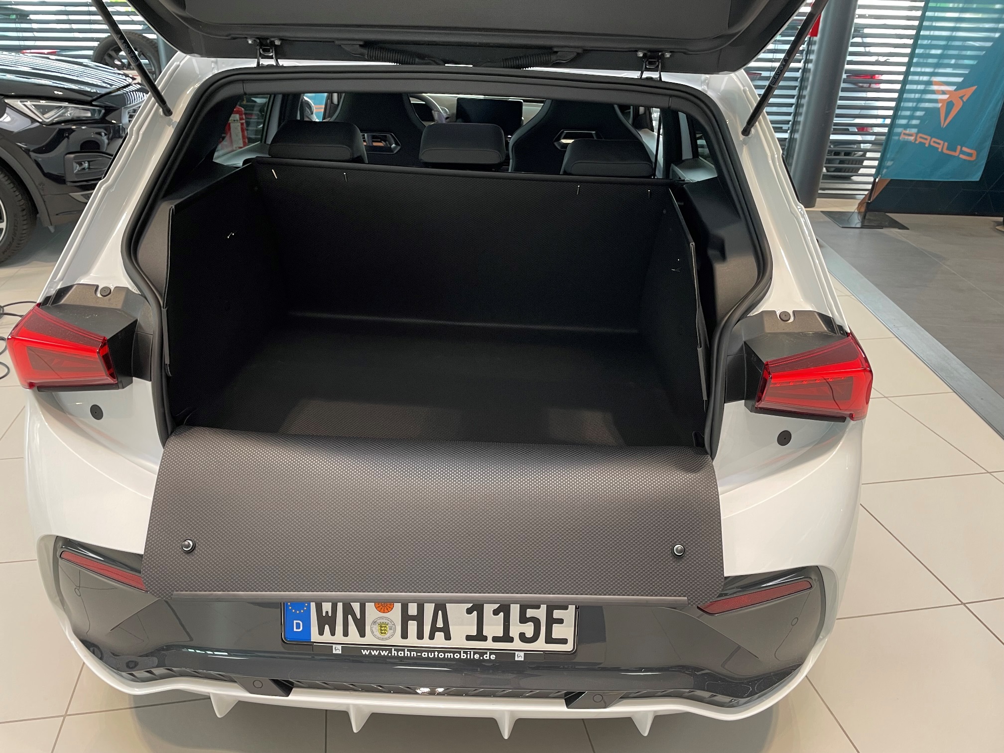 Diese Kofferraumwanne verkleidet den Kofferraum Ihres Seat Cupra Born mit hochliegendem Kofferraumboden perfekt. Sie verzichten auf keinen Zentimeter Paltz im Kofferraum, weder in der Fläche noch in der Höhe. Sind Sie z.B. Sportler und brauchen manchmal mehr Platz im Kofferraum, klappen Sie bei dieser Variante M11 einfach die Rücksitze und die Rückwand Ihres Kofferraumschutzes herunter und so steht Ihnen eine geschützte, große Ladefläche zur Verfügung. Klappen Sie die Rücksitze hoch und Sie können bedenkenlos Ihren Hund, der nass und schmutzig sein darf, transportieren. Unsere kratzfeste und wasserdichte Kofferraumwanne ist eine passgenaue, formstabile, selbsttragende und unverwüstliche Kofferraumeinlage, die mit dem Fahrzeug nicht verbunden werden muss mittels Schnüren oder Klettbändern, wie bei formlosen Schutzplanen, Gewebeplanen, Autoschondecken. Im Gegenteil, der inhaenger ist ein Kofferraumschutz, der ohne äußere Unterstützung, selbstständig aufrecht steht und Ihren Kofferraum optimal nutzt, ohne vom wertvollen Raum etwas zu verlieren. Sie können ihn allgemein für den Transport und speziell als eine ideale Hundebox bzw. Hundetransportbox verwenden, immer frei von Hundehaaren, Schmutz, Feuchtigkeit und Nässe. Sollten Sie den Kofferraumschutz nicht brauchen, klappen Sie ihn sekundenschnell zu einer strapazierfähigen Bodenmatte zusammen und Sie haben einen aufgeräumten Kofferraum.