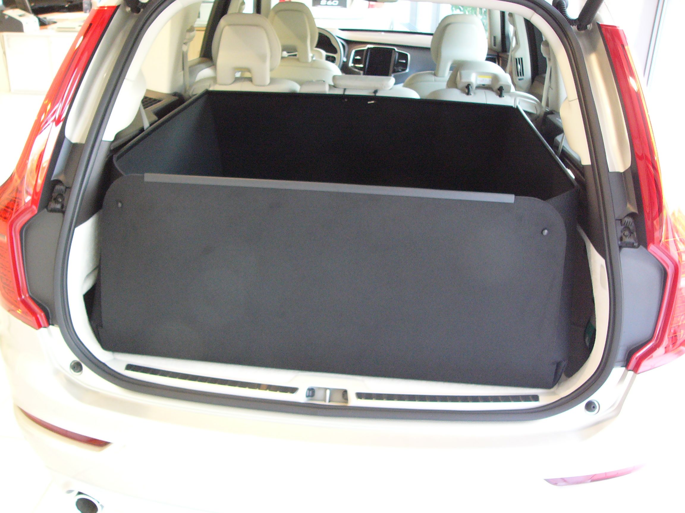Dieser Kofferraumschutz verkleidet den Kofferraum Ihres Volvo XC90 rundum und komplett. Sie können bedenkenlos Ihren Hund, der nass und schmutzig sein und triefen darf, transportieren aber auch schmutzerzeugende, schwere, spitze Gegenstände wie Kaminholz, Weinachstbaum, Fahrrad. Unsere Kofferraumverkleidung ist eine passgenaue, formstabile, selbsttragende und unverwüstliche Kofferraumeinlage, die mit dem Fahrzeug nicht verbunden werden muss mittels Schnüren oder Klettbändern, wie bei formlosen Schutzplanen, Gewebeplanen, Autoschondecken. Im Gegenteil, der inhaenger ist ein Kofferraumschutz, der ohne äußere Unterstützung, selbstständig aufrecht steht und Ihren Kofferraum optimal nutzt, ohne vom wertvollen Raum etwas zu verlieren. Sie können ihn allgemein für den Transport und speziell als eine ideale Hundebox bzw. Hundetransportbox verwenden. Sollten Sie den Kofferraumschutz nicht brauchen, klappen Sie ihn sekundenschnell zu einer strapazierfähigen Bodenmatte zusammen und Sie haben einen aufgeräumten Kofferraum.