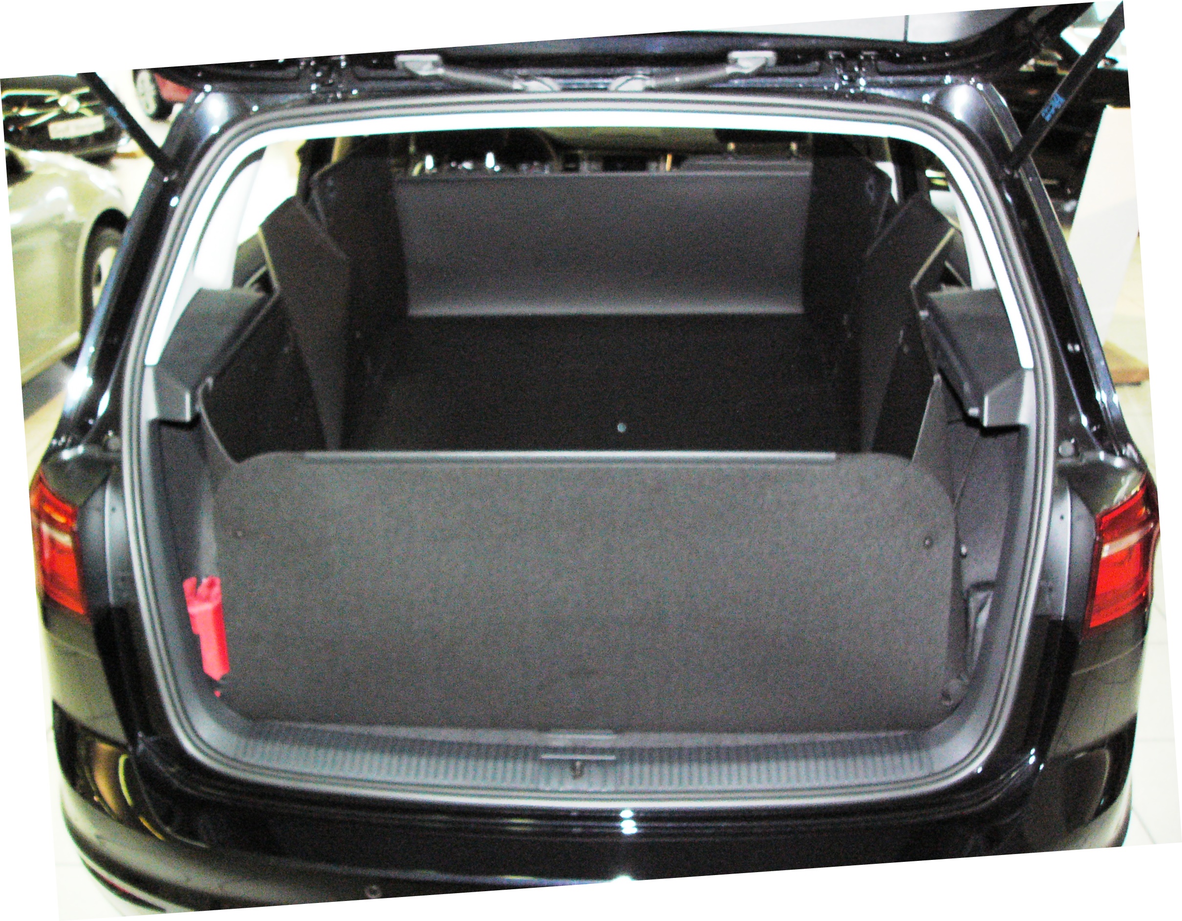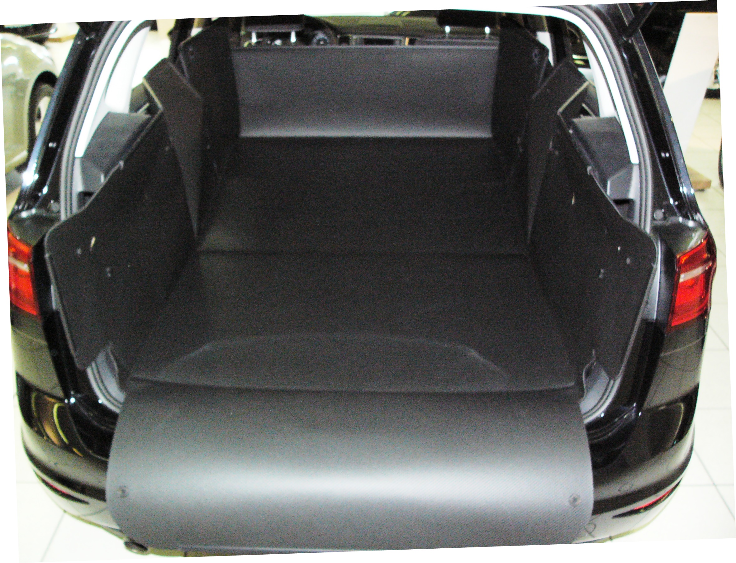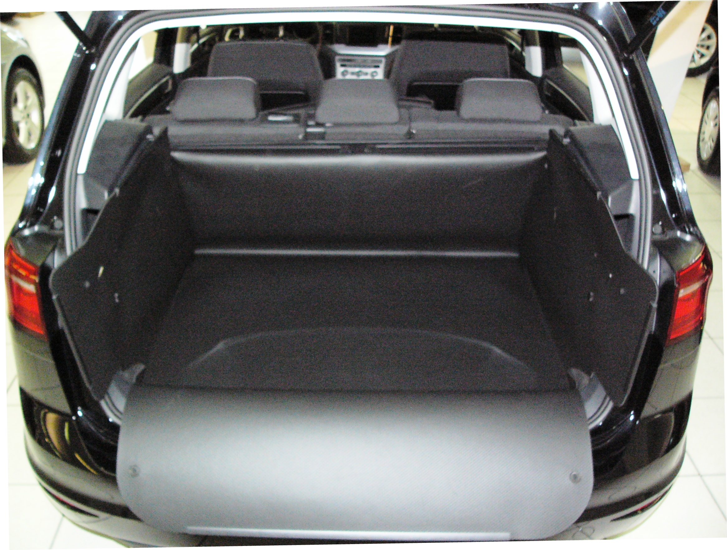 Der Kofferraumschutz, Variante inhaenger L11, schützt den Kofferraum von VW Golf Sportsvan rundum und fensterhoch, wenn die Rücksitze in aufgestellter Position sind oder den gesamten verfügbaren Laderaum von der Ladekante bis zum Fahrersitz, wenn die Rücksitze heruntergeklappt sind. Der Schutz der Ladekante und der Stoßstange ist in die Kofferraumwanne integriert. Das Modell L11 können Sie z.B. als Hundebox nutzen und Ihre Fahrgäste mitnehmen oder Sie können die Rücksitze umklappen, den inhaenger blitzschnell ausfalten und lange Gegenstände transportieren, ohne dass der Laderaum schmutzig oder Ihr Fahrzeug beschädigt wird. Unser passgenauer, formstabiler Kofferraumschutz muss nicht wie bei dünnen und formlosen Schutzplanen, Gewebeplanen, Autoschondecken mittels Schnüren oder Klettbändern mit dem Fahrzeug verbunden werden; sie presst sich gegen die Wände des Kofferraums und gegen die Rückenlehnen und verschwendet somit keinen wertvollen Raum. Sollten Sie den Kofferraumschutz nicht brauchen, klappen Sie ihn sekundenschnell zu einer strapazierfähigen Bodenmatte zusammen und Sie haben einen aufgeräumten Kofferraum.