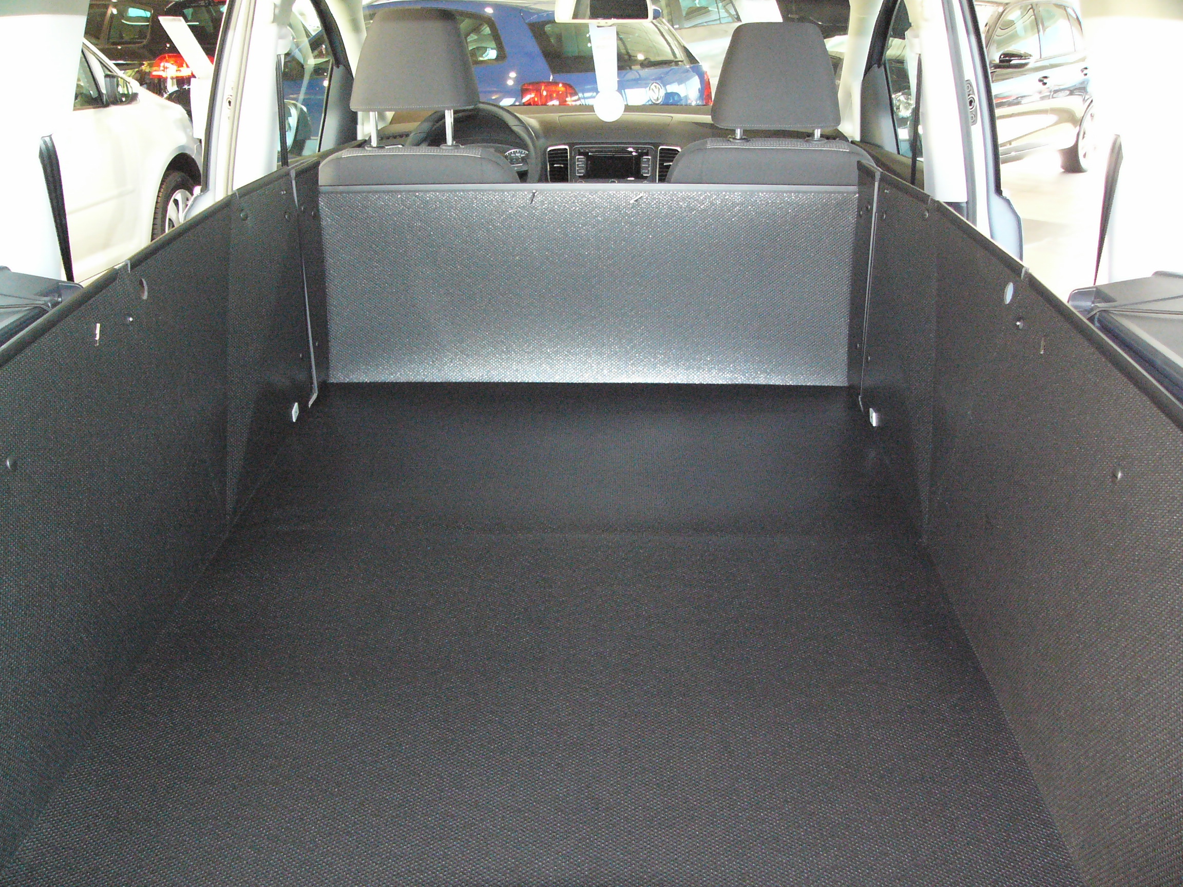 Der Kofferraumschutz, Modell inhaenger L11, schützt den Kofferraum von VW Sharan mit 5-, 6- oder 7-Sitzern rundum, wenn die Rücksitze in aufgestellter Position sind oder den gesamten verfügbaren Laderaum, wenn die Rücksitze heruntergeklappt sind. Der Schutz der Ladekante und der Stoßstange ist in die Kofferraumwanne integriert. Das Modell L11 können Sie z.B. als Hundebox nutzen und Ihre Fahrgäste mitnehmen oder Sie können die Rücksitze umklappen, den inhaenger blitzschnell ausfalten und z.B. Ihr Fahrrad transportieren oder Gartenabfälle abfahren, ohne dass der Laderaum schmutzig oder Ihr Fahrzeug beschädigt wird. Das Material des inhaengers ist so robust, dass Sie Ihr Fahrzeug professionell zum Transport von schweren, schmutzigen und sperrigen Gegenständen nutzen können. Unser passgenauer, formstabiler Kofferraumschutz muss nicht wie bei dünnen und formlosen Schutzplanen, Gewebeplanen, Autoschondecken mittels Schnüren oder Klettbändern mit dem Fahrzeug verbunden werden; sie presst sich gegen die Wände des Kofferraums und gegen die Rückenlehnen und verschwendet somit keinen wertvollen Raum. Sollten Sie den Kofferraumschutz nicht brauchen, klappen Sie ihn sekundenschnell zu einer strapazierfähigen Bodenmatte zusammen und Sie haben einen aufgeräumten Kofferraum.