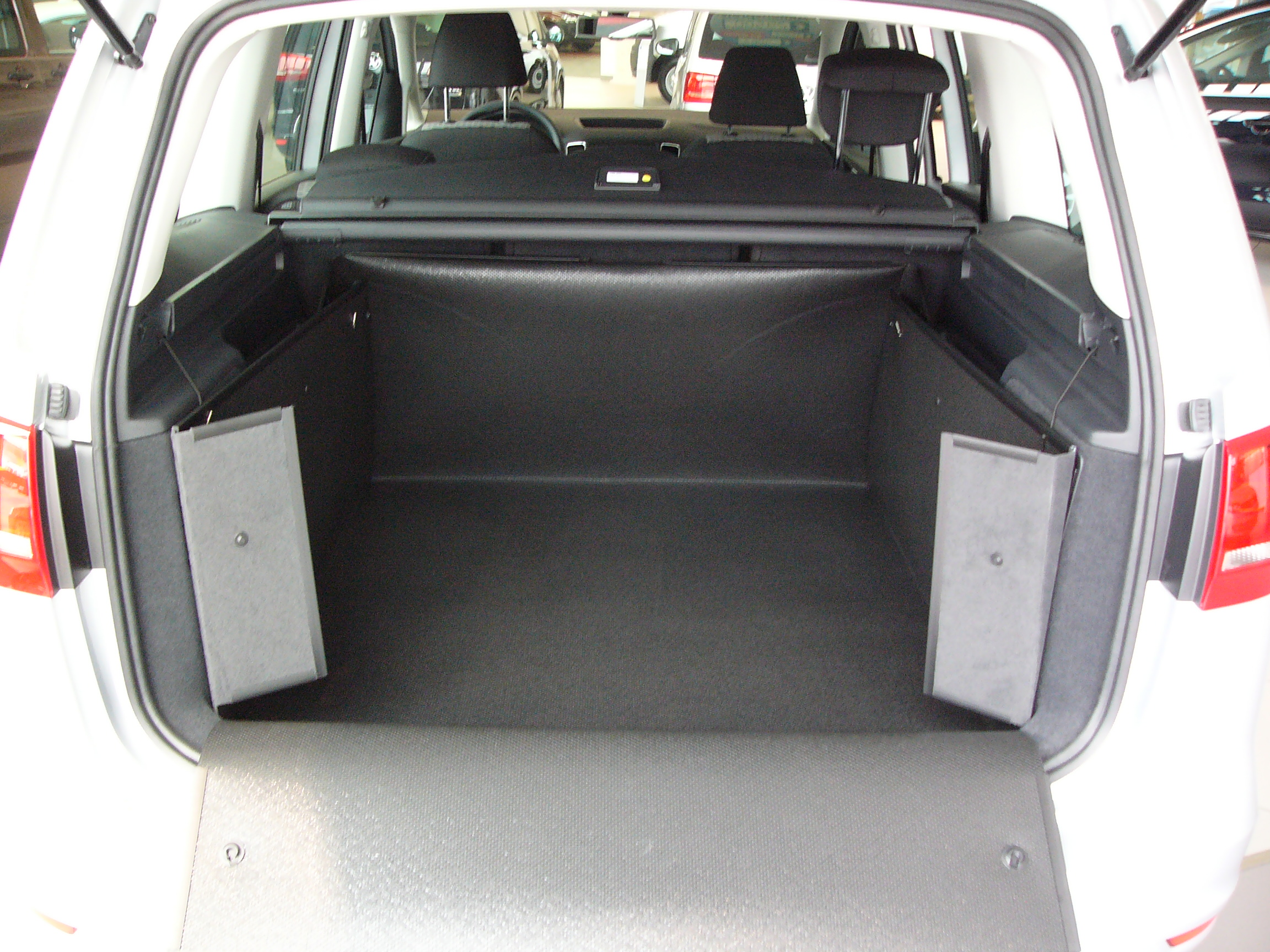 Der Kofferraumschutz, Modell inhaenger L11, schützt den Kofferraum von VW Sharan mit 5-, 6- oder 7-Sitzern rundum, wenn die Rücksitze in aufgestellter Position sind oder den gesamten verfügbaren Laderaum, wenn die Rücksitze heruntergeklappt sind. Der Schutz der Ladekante und der Stoßstange ist in die Kofferraumwanne integriert. Das Modell L11 können Sie z.B. als Hundebox nutzen und Ihre Fahrgäste mitnehmen oder Sie können die Rücksitze umklappen, den inhaenger blitzschnell ausfalten und z.B. Ihr Fahrrad transportieren oder Gartenabfälle abfahren, ohne dass der Laderaum schmutzig oder Ihr Fahrzeug beschädigt wird. Das Material des inhaengers ist so robust, dass Sie Ihr Fahrzeug professionell zum Transport von schweren, schmutzigen und sperrigen Gegenständen nutzen können. Unser passgenauer, formstabiler Kofferraumschutz muss nicht wie bei dünnen und formlosen Schutzplanen, Gewebeplanen, Autoschondecken mittels Schnüren oder Klettbändern mit dem Fahrzeug verbunden werden; sie presst sich gegen die Wände des Kofferraums und gegen die Rückenlehnen und verschwendet somit keinen wertvollen Raum. Sollten Sie den Kofferraumschutz nicht brauchen, klappen Sie ihn sekundenschnell zu einer strapazierfähigen Bodenmatte zusammen und Sie haben einen aufgeräumten Kofferraum.