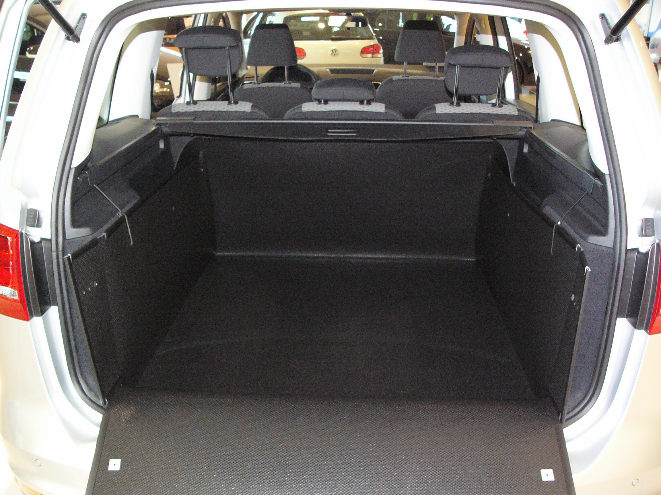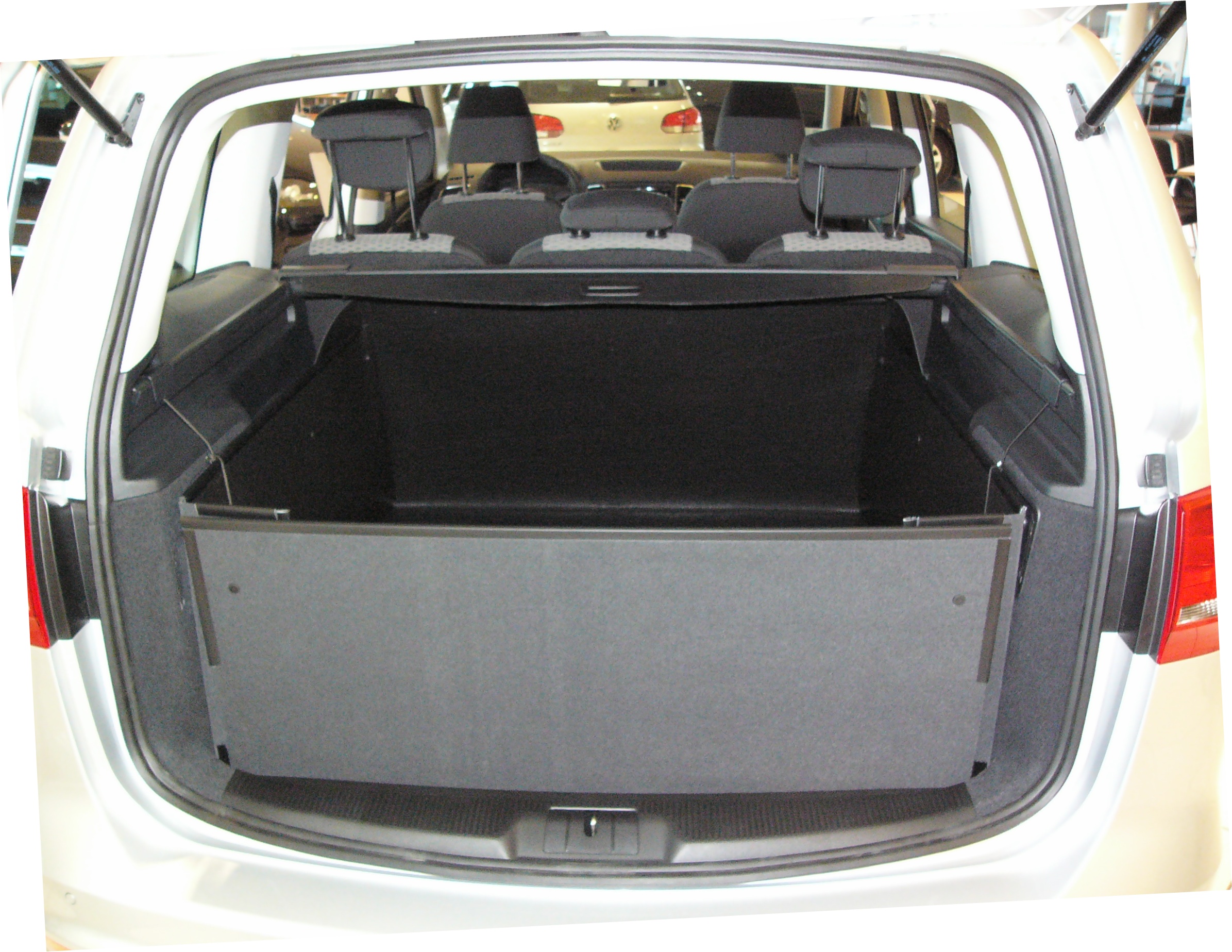 Dieser Kofferraumschutz verkleidet den Kofferraum Ihres VW Sharan 5-Sitzers oder 6-Sitzers oder 7-Sitzers rundum und komplett. Sie können bedenkenlos Ihren Hund, der nass und schmutzig sein und triefen darf, transportieren aber auch schmutzerzeugende, schwere, lange, spitze Gegenstände. Unsere Kofferraumverkleidung ist eine passgenaue, formstabile, selbsttragende und unverwüstliche Kofferraumeinlage, die mit dem Fahrzeug nicht verbunden werden muss mittels Schnüren oder Klettbändern, wie bei dünnen und formlosen Schutzplanen, Gewebeplanen, Autoschondecken. Im Gegenteil, der inhaenger ist ein Kofferraumschutz, der ohne äußere Unterstützung, selbstständig aufrecht steht und Ihren Kofferraum optimal nutzt, ohne vom wertvollen Raum etwas zu preiszugeben. Sie können ihn allgemein für jeglichen Transport und speziell als eine ideale Hundebox bzw. Hundetransportbox verwenden. Sollten Sie den Kofferraumschutz nicht brauchen, klappen Sie ihn sekundenschnell zu einer strapazierfähigen Bodenmatte zusammen und Sie haben einen aufgeräumten Kofferraum.