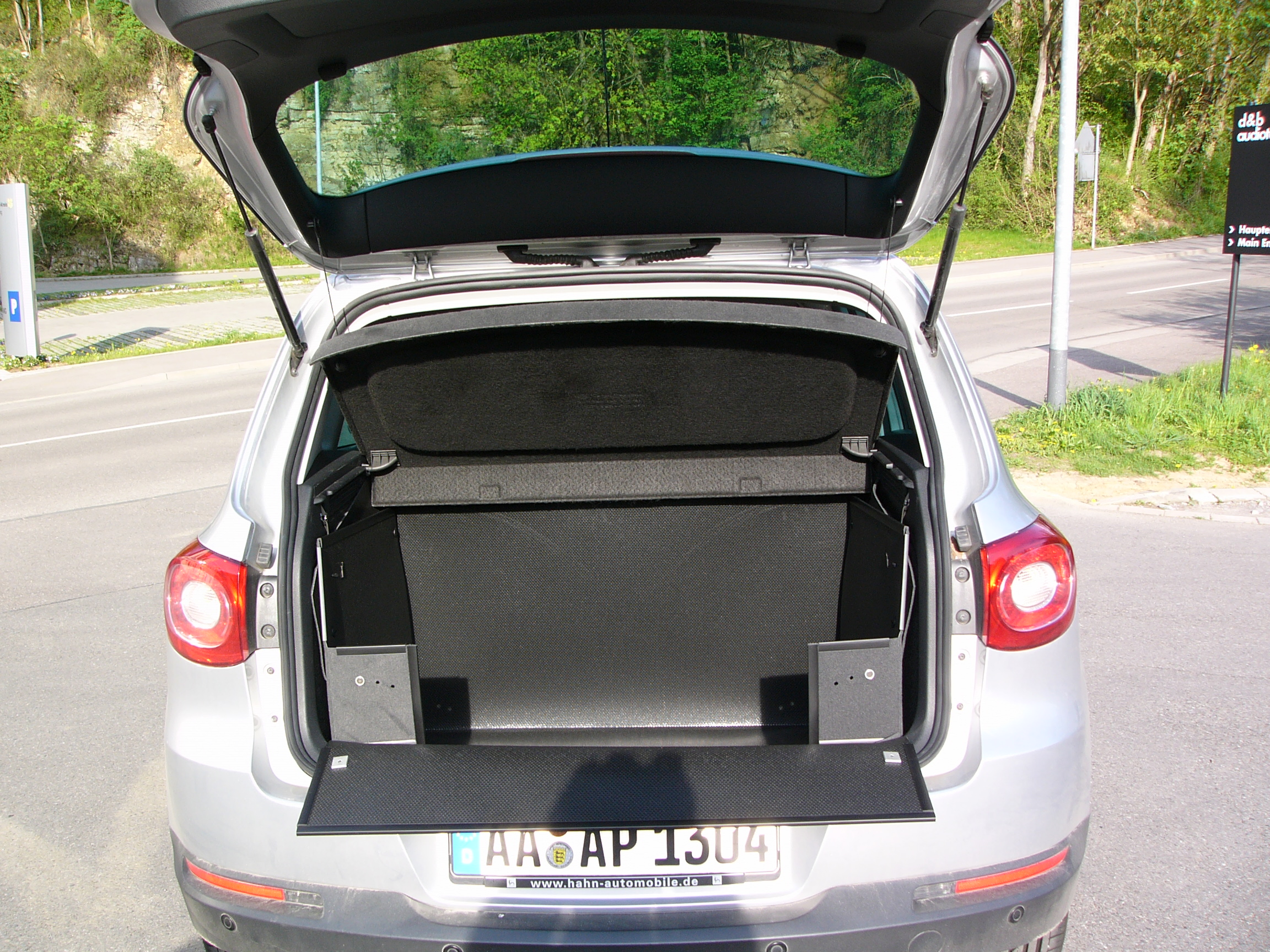 Dieser Kofferraumschutz verkleidet den Kofferraum Ihres VW Tiguanrundum und komplett. Sie können bedenkenlos Ihren Hund, der nass und schmutzig sein und triefen darf, transportieren aber auch schmutzerzeugende Gegenstände. Unsere Kofferraumverkleidung ist eine passgenaue, formstabile, selbsttragende und unverwüstliche Kofferraumeinlage, die mit dem Fahrzeug nicht verbunden werden muss mittels Schnüren oder Klettbändern, wie bei dünnen und formlosen Schutzplanen, Gewebeplanen, Autoschondecken. Im Gegenteil, der inhaenger ist ein Kofferraumschutz, der ohne äußere Unterstützung, selbstständig aufrecht steht und Ihren Kofferraum optimal nutzt, ohne vom wertvollen Raum etwas zu verlieren. Sie können ihn allgemein für den Transport und speziell als eine ideale Hundebox bzw. Hundetransportbox verwenden. Sollten Sie den Kofferraumschutz nicht brauchen, klappen Sie ihn sekundenschnell zu einer strapazierfähigen Bodenmatte zusammen und Sie haben einen aufgeräumten Kofferraum.