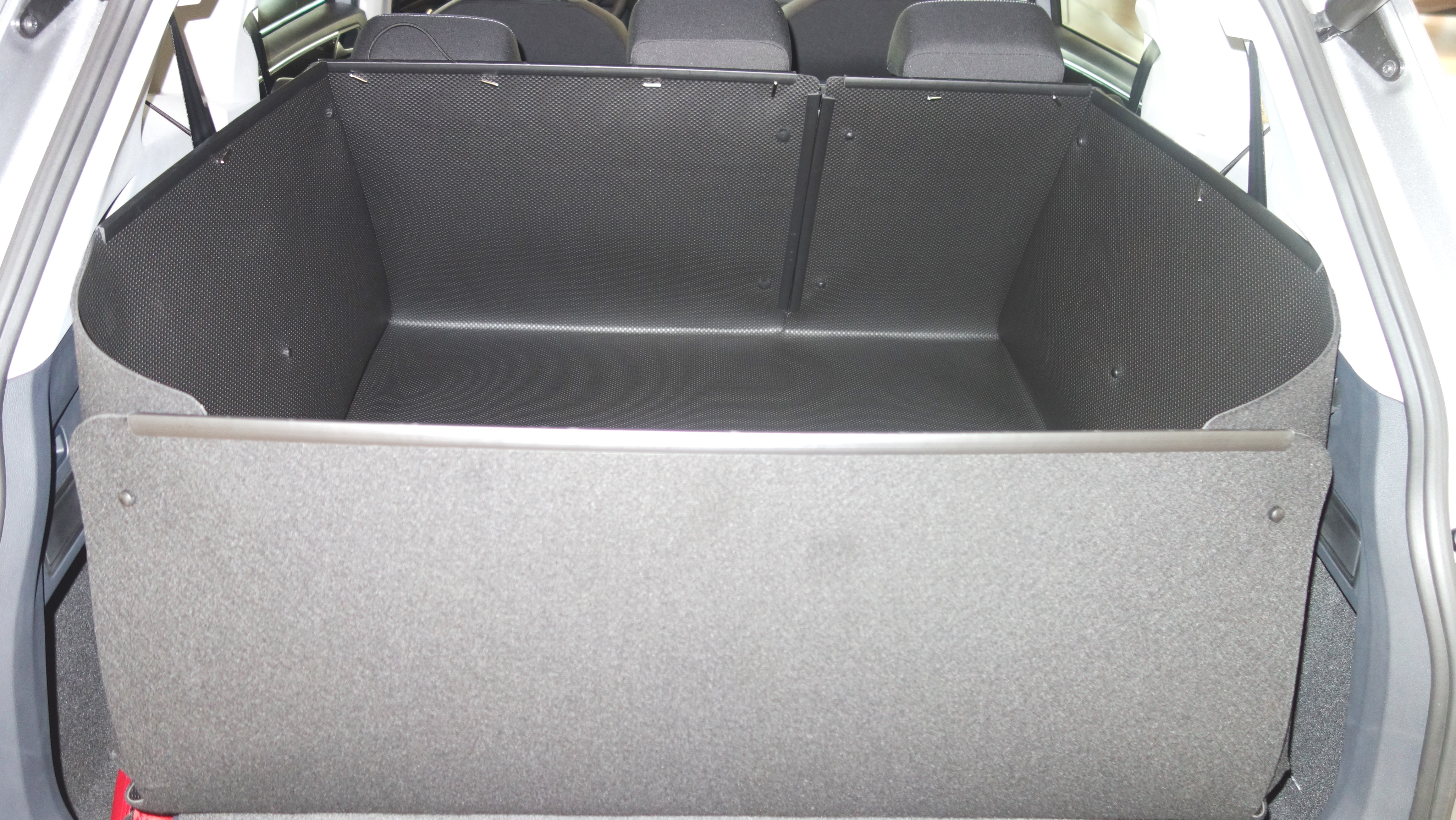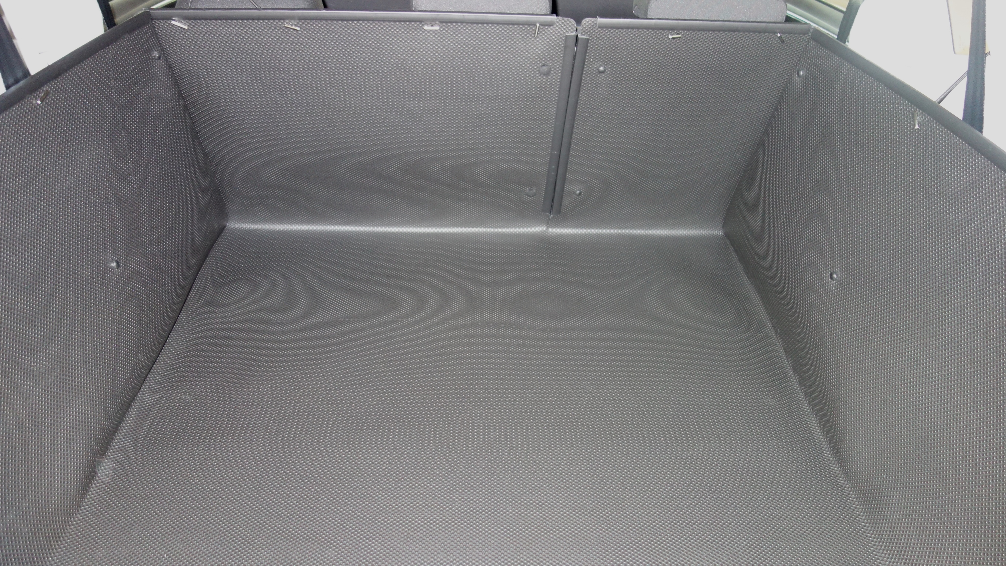 Dieser Kofferraumschutz verkleidet den Kofferraum Ihres VW Tiguan Allspace rundum und perfekt. Die Rücksitze können mit der Rückwand des Kofferraumschutzes zusammen einzeln oder zusammen umgeklappt werden. Sie können, wenn die Sitze hochgeklappt sind, bedenkenlos Ihren Hund, der nass und schmutzig sein und triefen darf, transportieren. Klappen Sie z.B. den Einzelsitz und transportieren Sie längere gegenstände wie Ihren Ski. Unsere Kofferraumverkleidung ist eine passgenaue, formstabile, selbsttragende und unverwüstliche Kofferraumeinlage, die mit dem Fahrzeug nicht verbunden werden muss mittels Schnüren oder Klettbändern, wie bei dünnen und formlosen Schutzplanen, Gewebeplanen, Autoschondecken. Im Gegenteil, der inhaenger ist ein Kofferraumschutz, der ohne äußere Unterstützung, selbstständig aufrecht steht und Ihren Kofferraum optimal nutzt, ohne vom wertvollen Raum etwas zu verlieren. Sie können ihn allgemein für den Transport und speziell als eine ideale Hundebox bzw. Hundetransportbox verwenden. Sollten Sie den Kofferraumschutz nicht brauchen, klappen Sie ihn sekundenschnell zu einer strapazierfähigen Bodenmatte zusammen und Sie haben einen aufgeräumten Kofferraum.