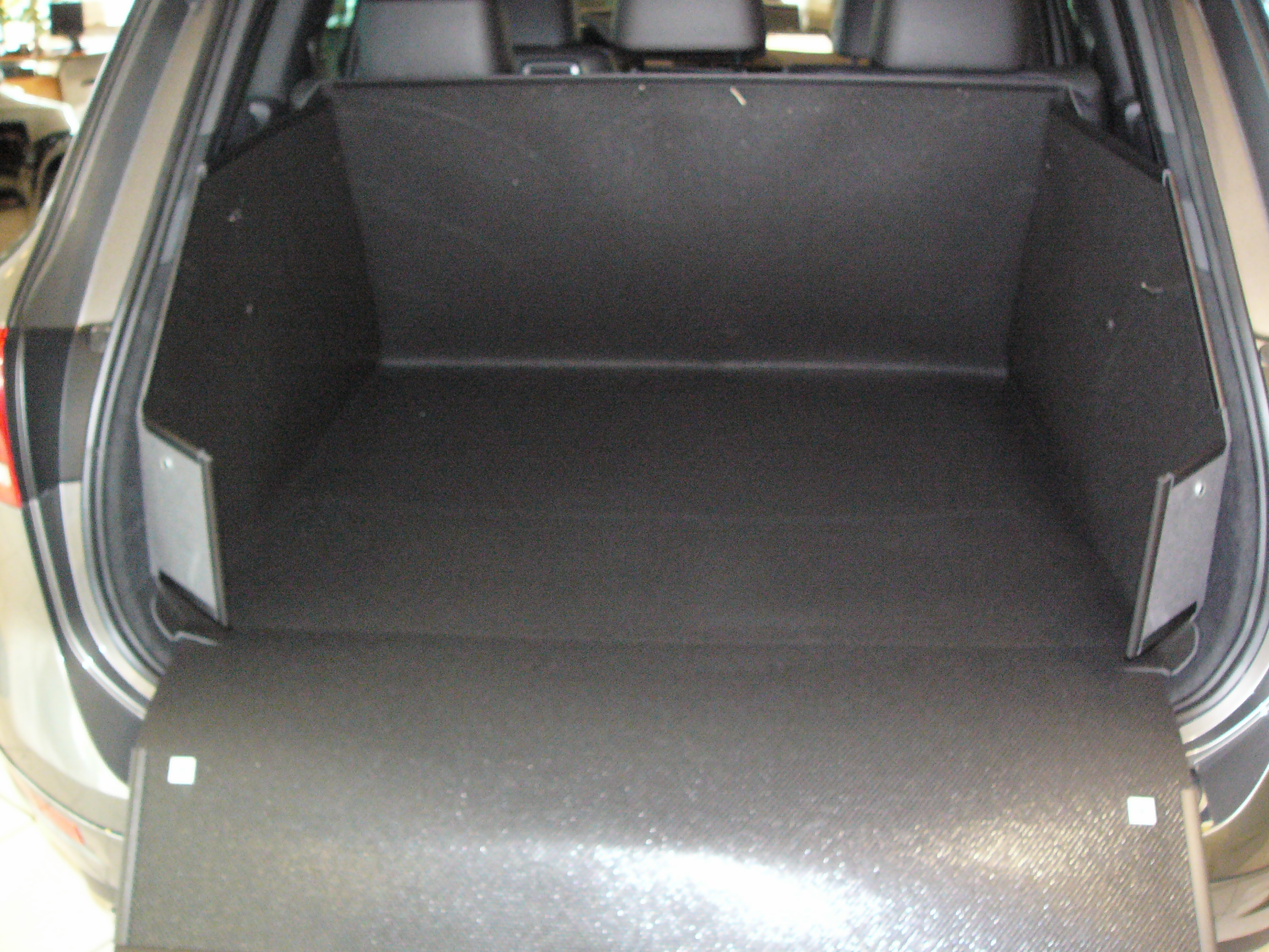 Dieser Kofferraumschutz verkleidet den Kofferraum Ihres VW Touareg rundum und komplett. Sie können bedenkenlos Ihren Hund, der nass und schmutzig sein und triefen darf, transportieren aber auch schmutzerzeugende Gegenstände. Unsere Kofferraumverkleidung ist eine passgenaue, formstabile, selbsttragende und unverwüstliche Kofferraumeinlage, die mit dem Fahrzeug nicht verbunden werden muss mittels Schnüren oder Klettbändern, wie bei dünnen und formlosen Schutzplanen, Gewebeplanen, Autoschondecken. Im Gegenteil, der inhaenger ist ein Kofferraumschutz, der ohne äußere Unterstützung, selbstständig aufrecht steht und Ihren Kofferraum optimal nutzt, ohne vom wertvollen Raum etwas zu verlieren. Sie können ihn allgemein für den Transport und speziell als eine ideale Hundebox bzw. Hundetransportbox verwenden. Sollten Sie den Kofferraumschutz nicht brauchen, klappen Sie ihn sekundenschnell zu einer strapazierfähigen Bodenmatte zusammen und Sie haben einen aufgeräumten Kofferraum.