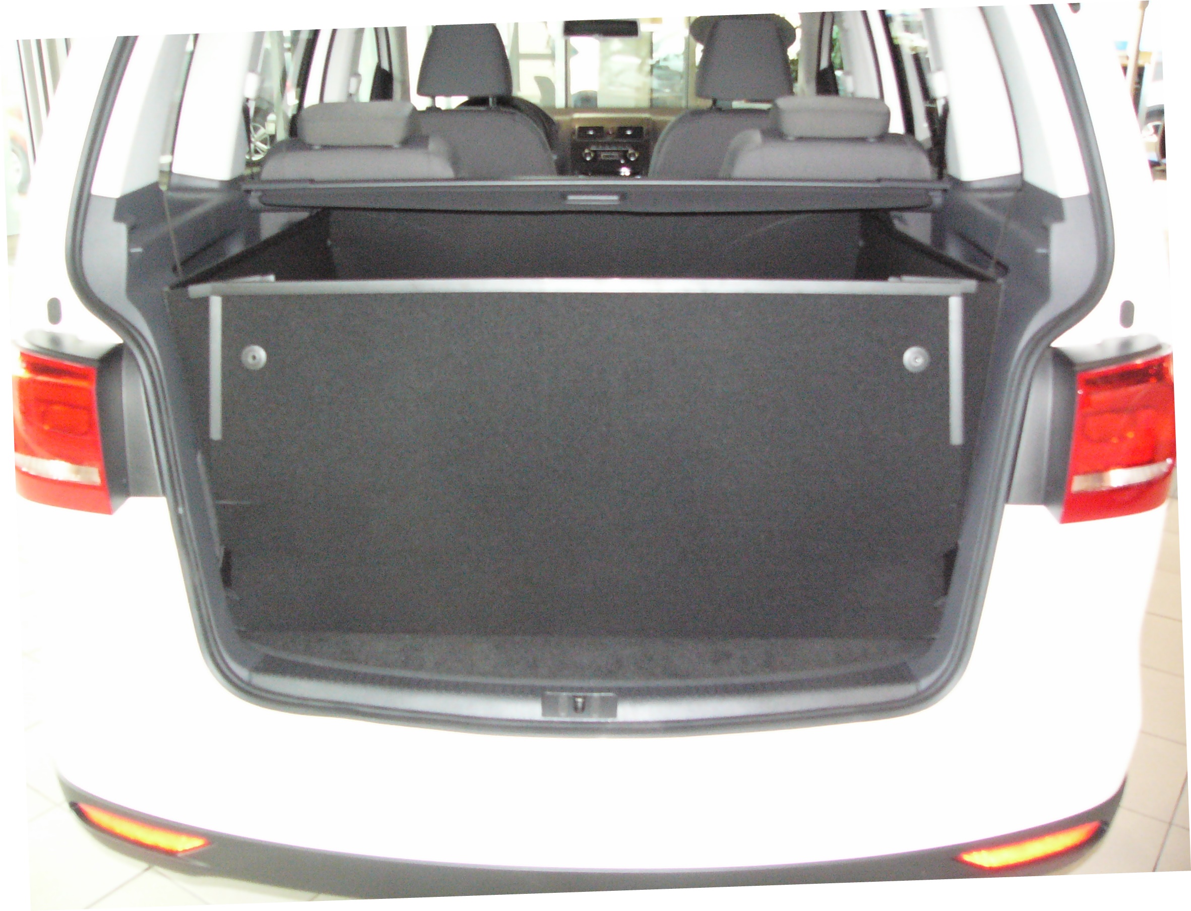 Dieser Kofferraumschutz verkleidet den Kofferraum Ihres VW Touran rundum und komplett. Sie können bedenkenlos Ihren Hund, der nass und schmutzig sein und triefen darf, transportieren aber auch schmutzerzeugende Gegenstände. Unsere Kofferraumverkleidung ist eine passgenaue, formstabile, selbsttragende und unverwüstliche Kofferraumeinlage, die mit dem Fahrzeug nicht verbunden werden muss mittels Schnüren oder Klettbändern, wie bei dünnen und formlosen Schutzplanen, Gewebeplanen, Autoschondecken. Im Gegenteil, der inhaenger ist ein Kofferraumschutz, der ohne äußere Unterstützung, selbstständig aufrecht steht und Ihren Kofferraum optimal nutzt, ohne vom wertvollen Raum etwas zu verlieren. Sie können ihn allgemein für den Transport und speziell als eine ideale Hundebox bzw. Hundetransportbox verwenden. Sollten Sie den Kofferraumschutz nicht brauchen, klappen Sie ihn sekundenschnell zu einer strapazierfähigen Bodenmatte zusammen und Sie haben einen aufgeräumten Kofferraum.