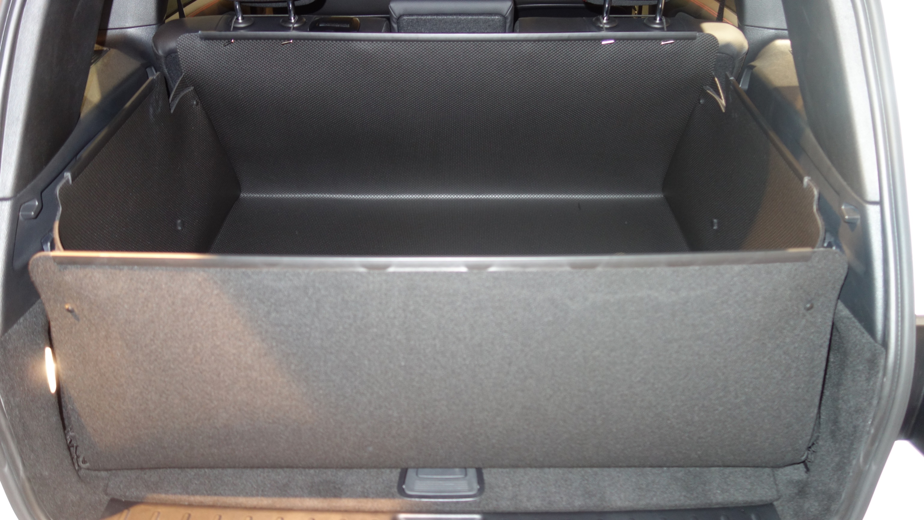 Hochliegender Kofferraumboden. Rücksitze hinten