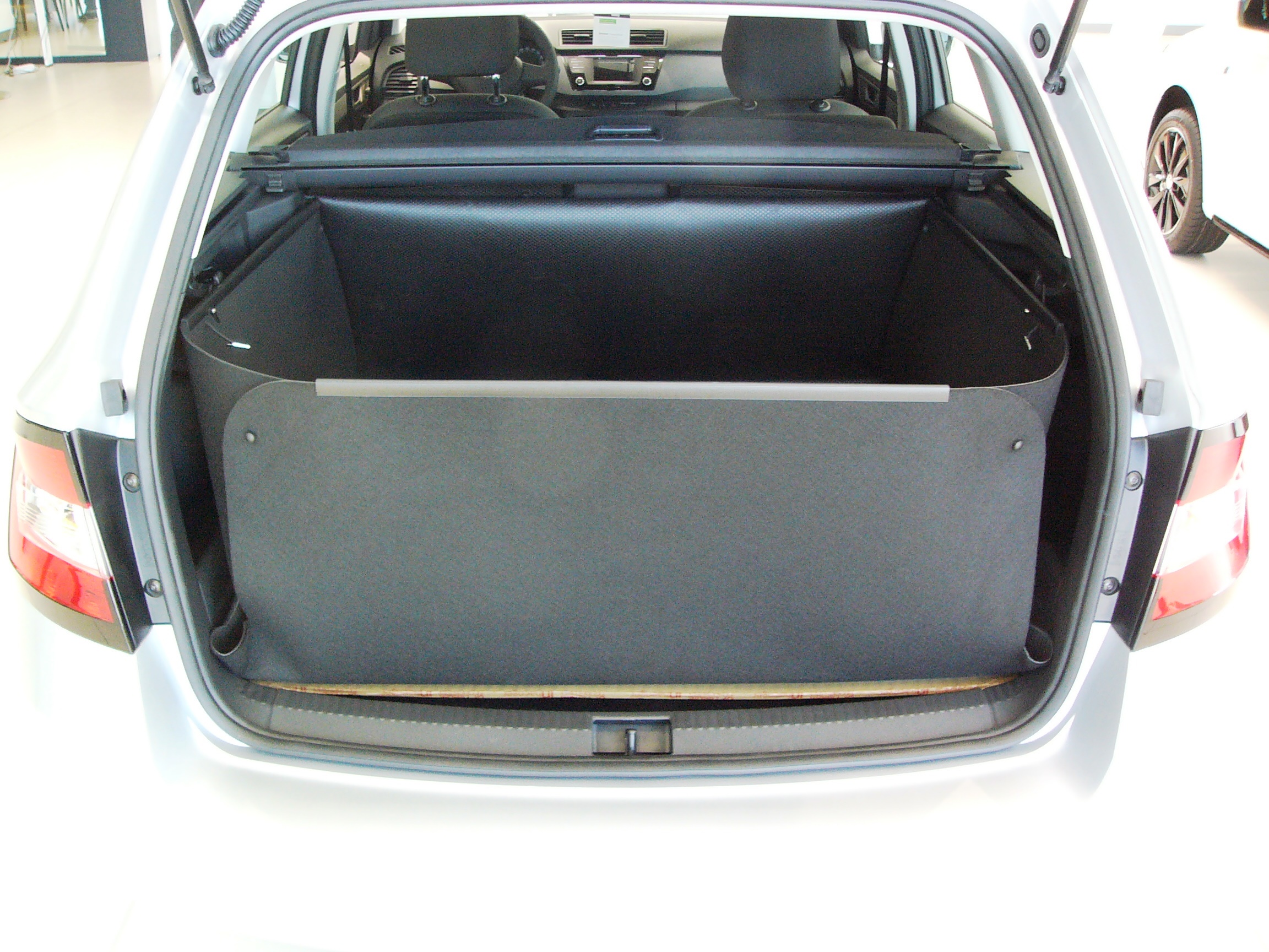 Der Kofferraumschutz, Modell inhaenger L11, schützt den Kofferraum von Fabia Combi mit hoch liegendem Boden rundum und fensterhoch, wenn die Rücksitze in aufgestellter Position sind oder